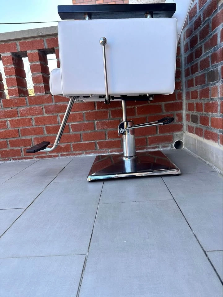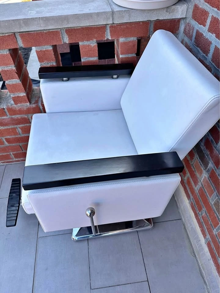 It was used as a decorative piece for a skincare showroom. Never used as an actual chair. Minor hairline scuffs here and there. Weight around 60 lb. Material: genuine leather + chrome over stainless steel. Local Pickup in Flushing, NY 11355