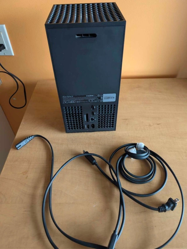 Selling a Xbox Series X with 1TB SSD in good condition, includes original cables. Comes with 2 controllers (one with original rechargeable battery + cable), a charging dock, 2 rechargeable batteries, extra backplates, thumb grips, and Call of Duty: Modern Warfare III.
