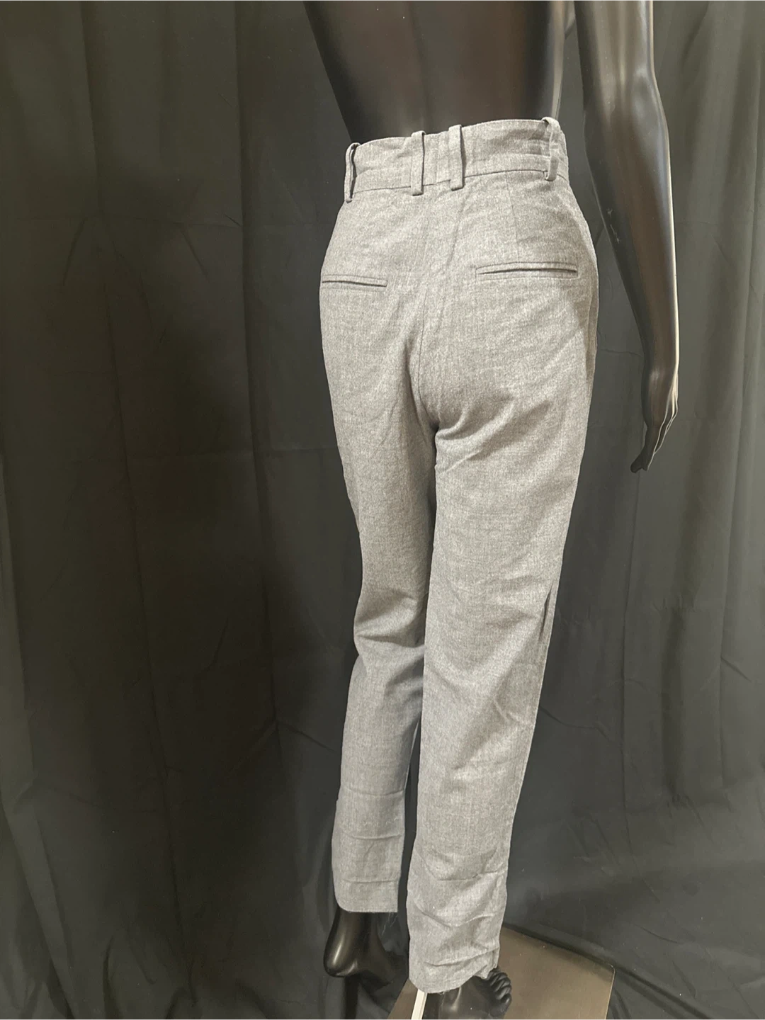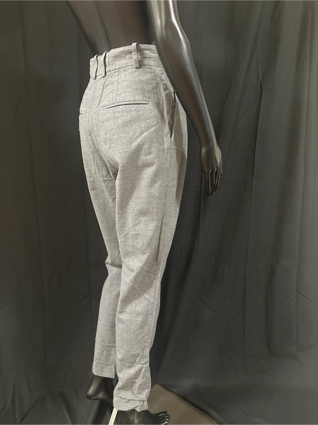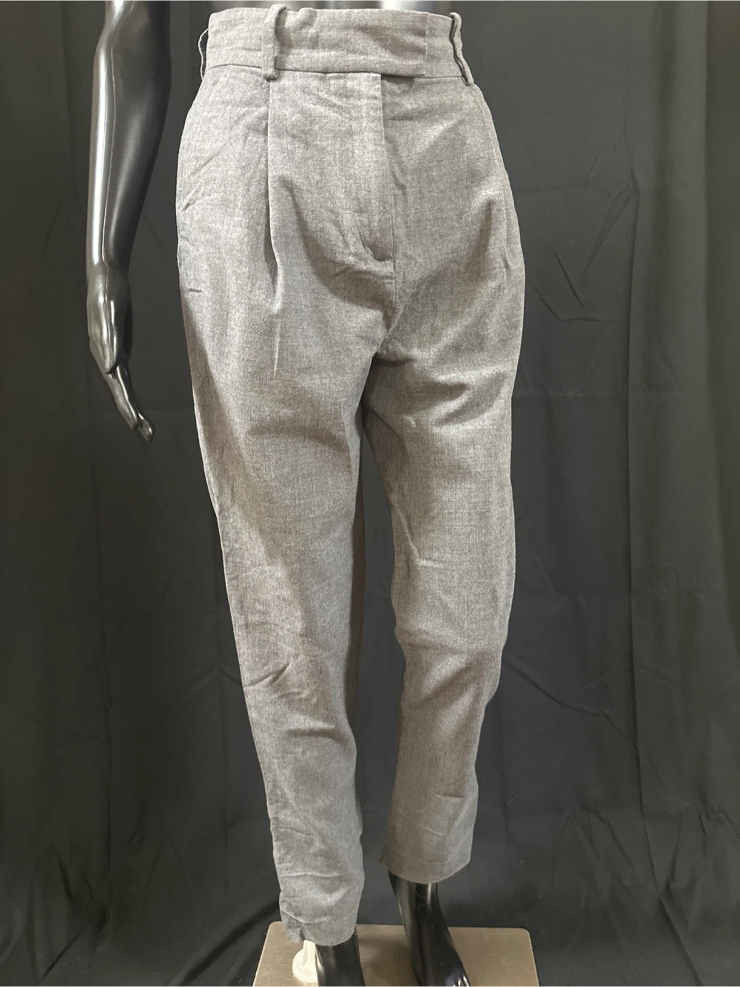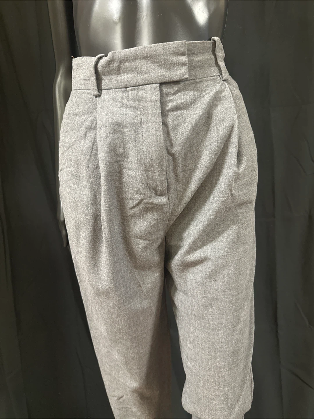 These COS trousers are a versatile grey color. They feature a classic pleated front and a straight leg fit. Made from a blend of polyester and viscose.
