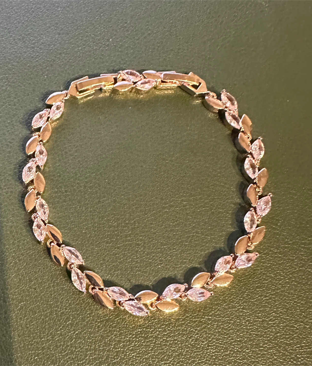 Selling a beautiful gold-toned bracelet. It features a delicate leaf design, perfect for adding a touch of elegance to any outfit! Brand new - comes with a velvet pouch