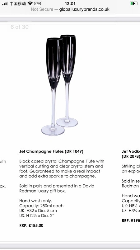 Beautiful pair of crystal champagne flutes by UK luxury brand DAVID REDMAN. In a very pretty amethyst colour. Excellent like new condition.