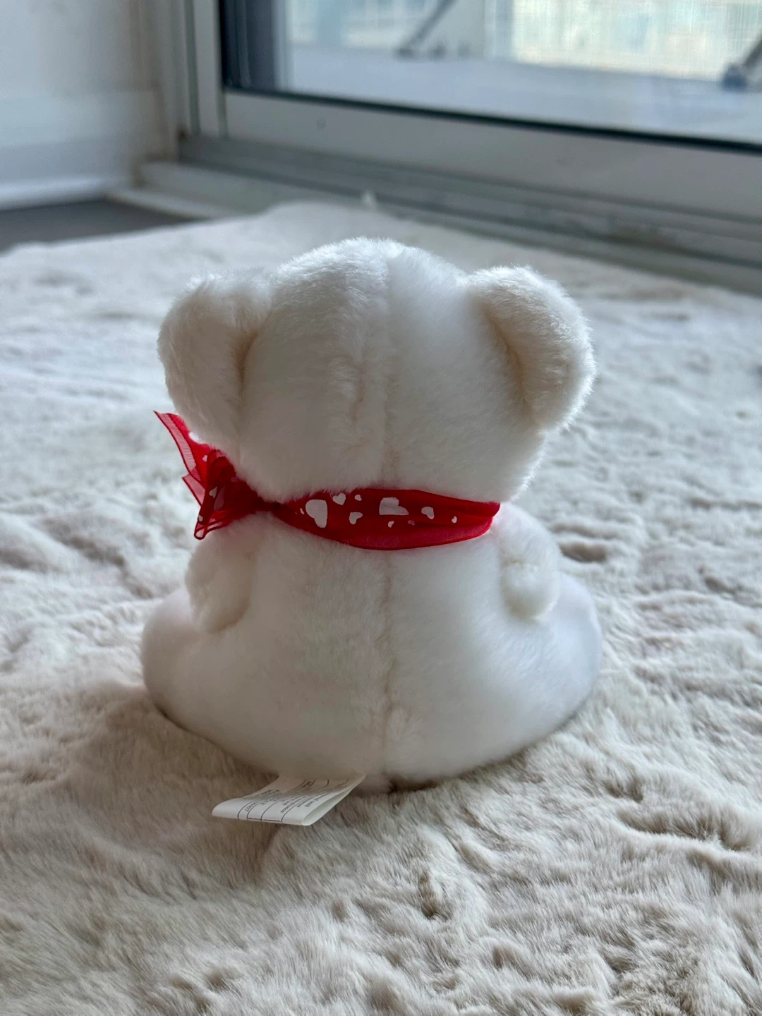 This is a cute white teddy bear plush.