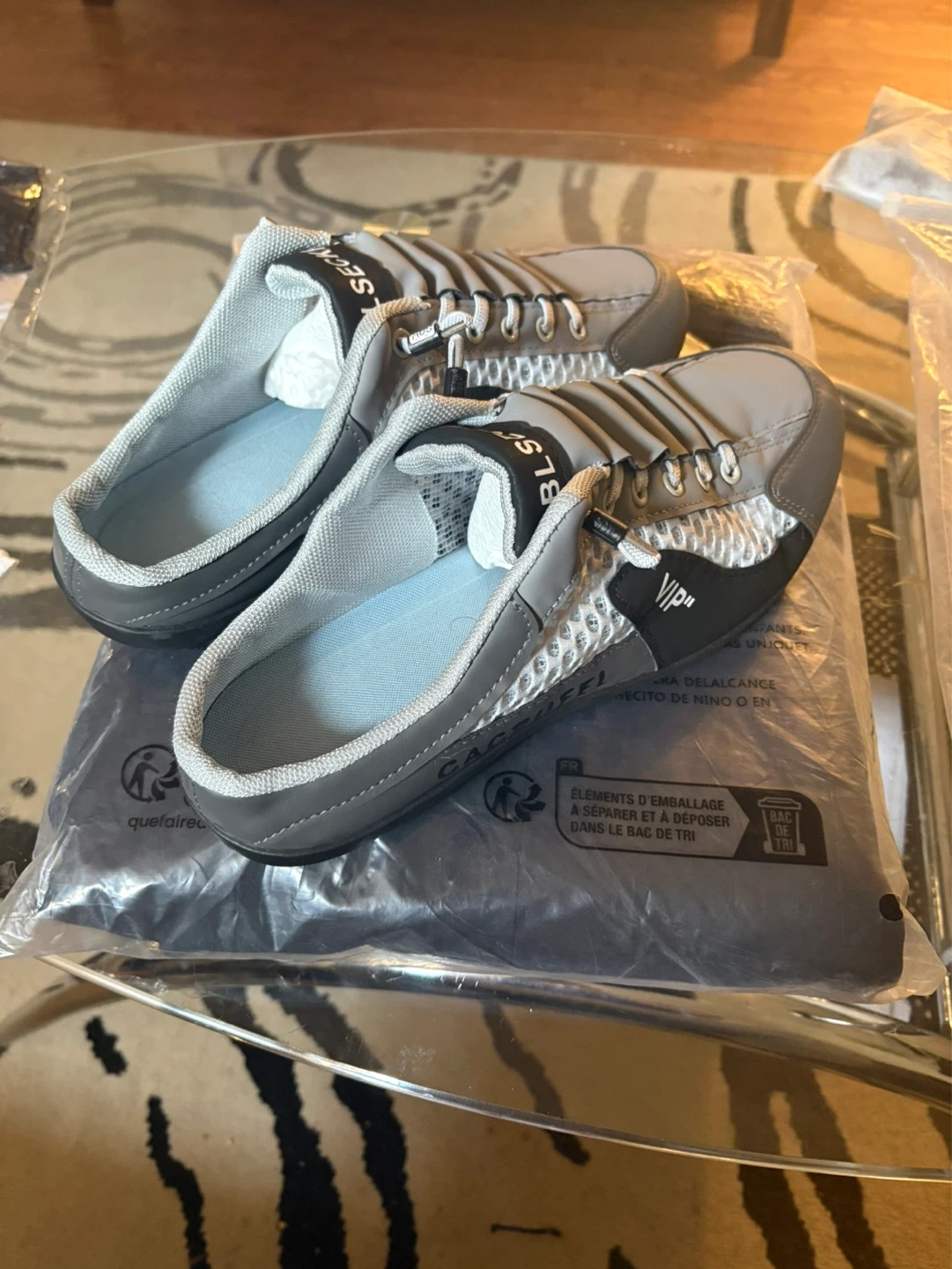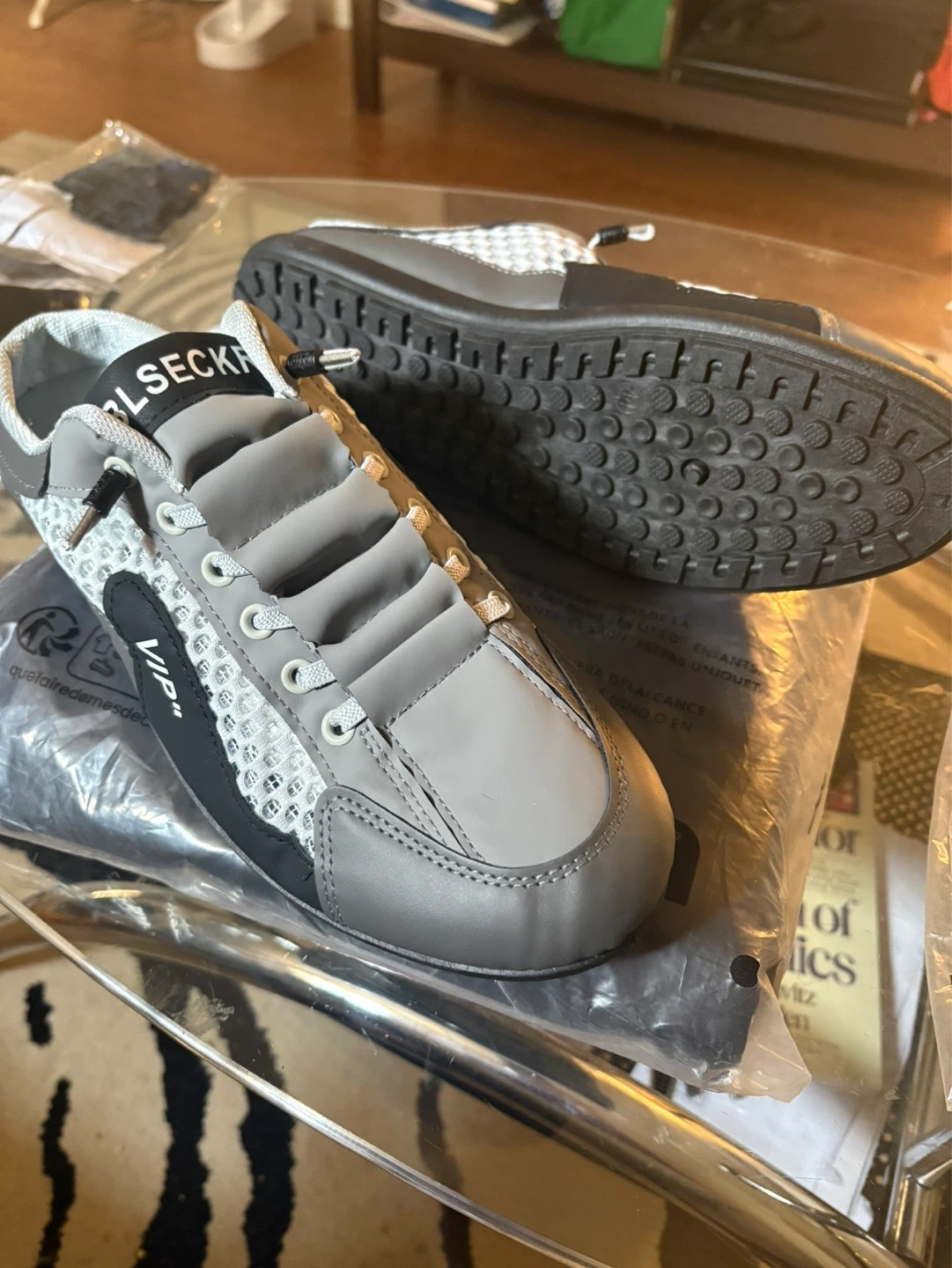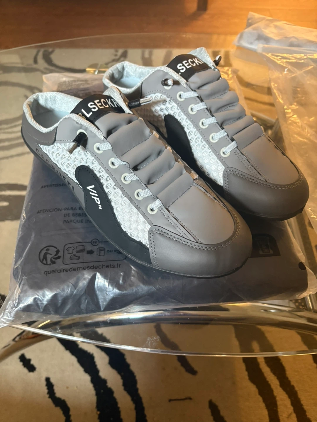 These men's slip-on sneakers feature a grey colour with mesh detailing. They're designed for comfort and ease of wear. The shoes have a rubber sole for traction.