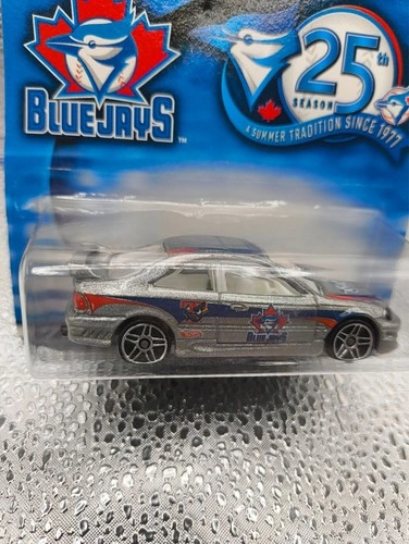 Collector's Blue Jays 25th Season Honda Civic Si Hot Wheels. A beautiful add-on to any collection, for fans and collectors, this 1:64 scale Hot Wheels diecast model celebrates the 25th Season of Major League Baseball's Toronto Blue Jays franchise. Show off your Toronto and Blue Jays Pride with this rare and cool piece from over 20 years ago. This piece is extremely mint and looks brand new.