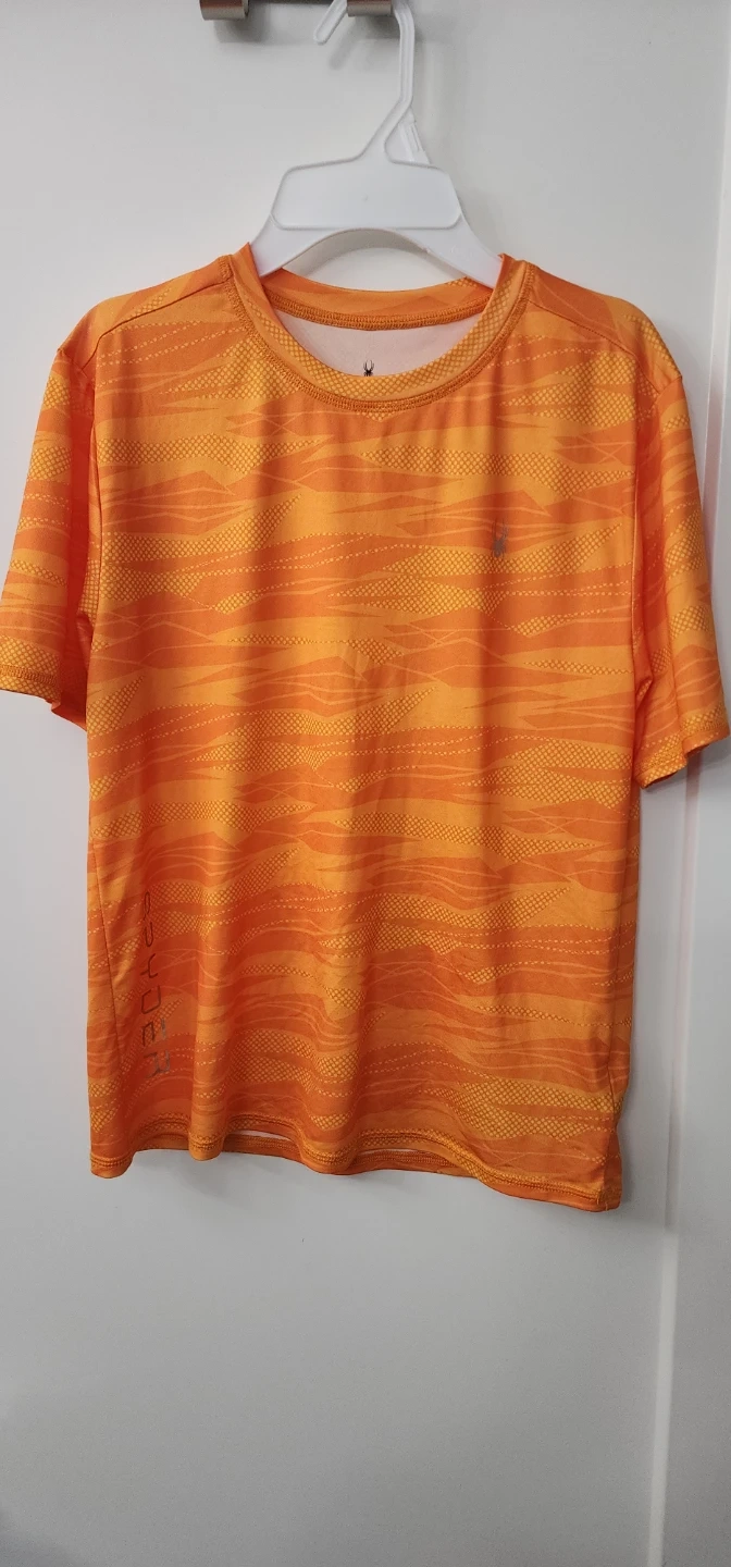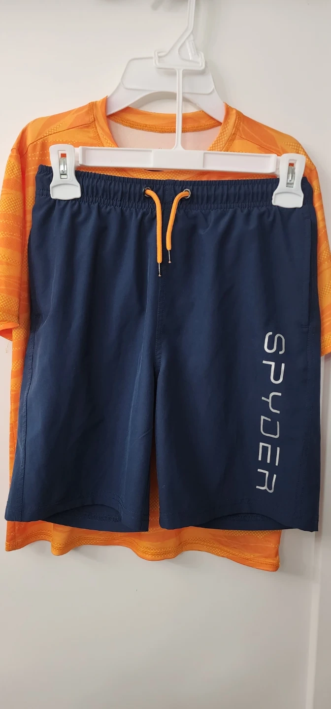 Original Spyder t-shirt and shorts set in orange and navy. Size is L/G. Great for beach days and swimming! Pet free and smoke free home!