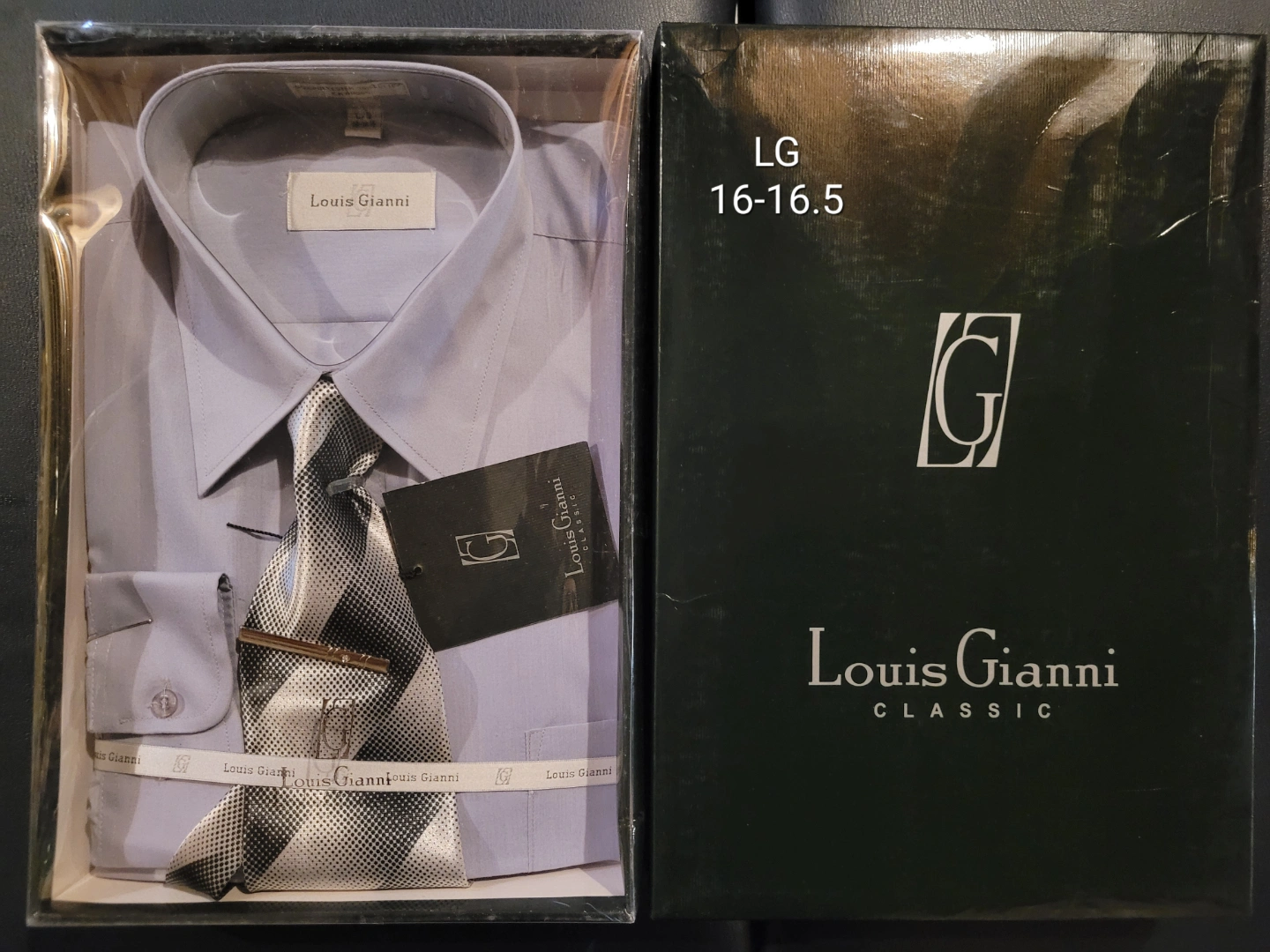 Three men's dress shirt and tie sets. Various colours and sizes. New with tags. Perfect for formal occasions. Brand New.