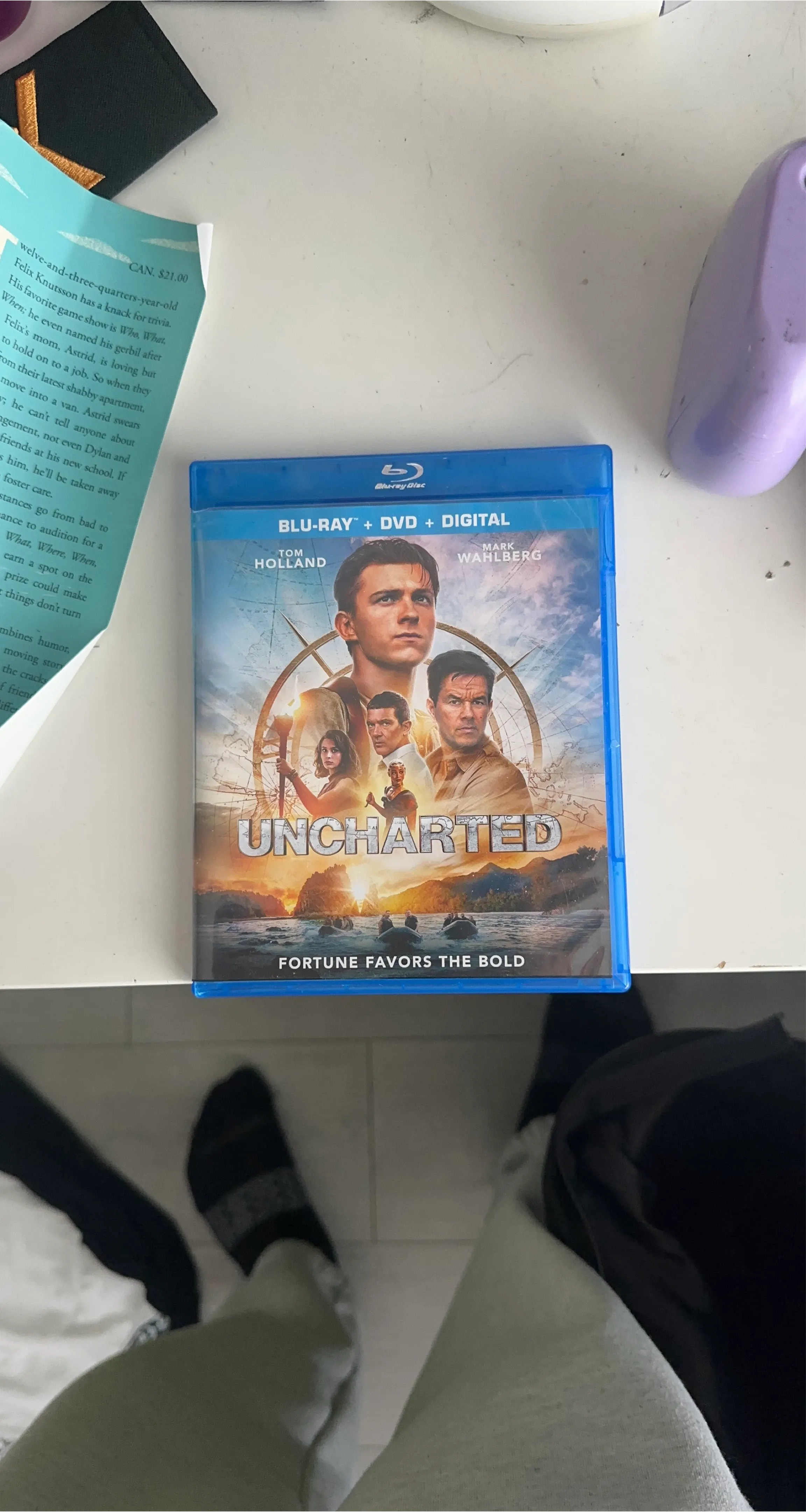 This is the Uncharted movie on Blu-ray, DVD, and Digital copy. It features Tom Holland and Mark Wahlberg. Fortune favors the bold!