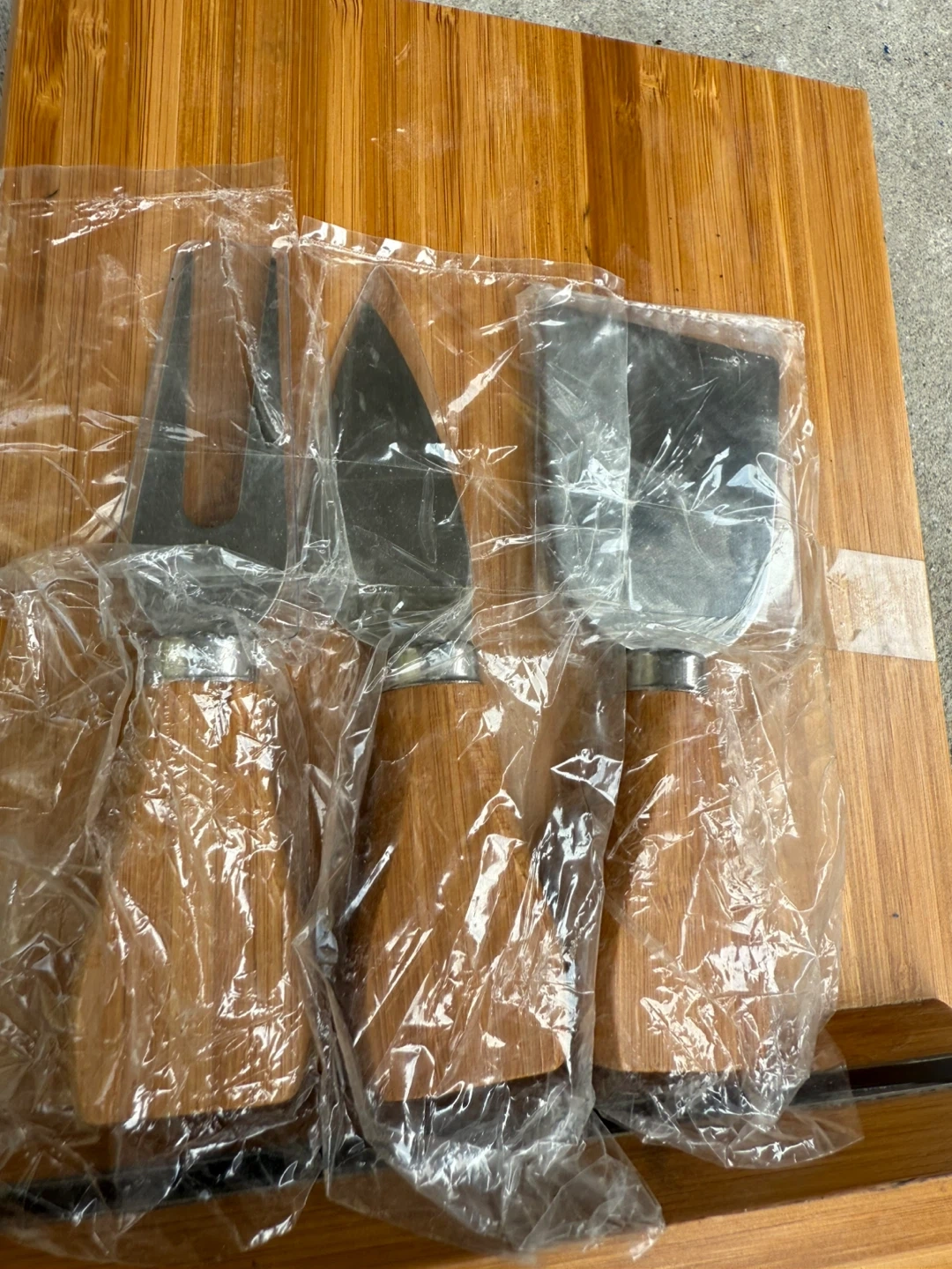 Selling a brand new cheese board set! It comes with three cheese tools, perfect for entertaining or a nice gift. The board and handles appear to be made of wood, adding a touch of natural elegance to your next gathering
