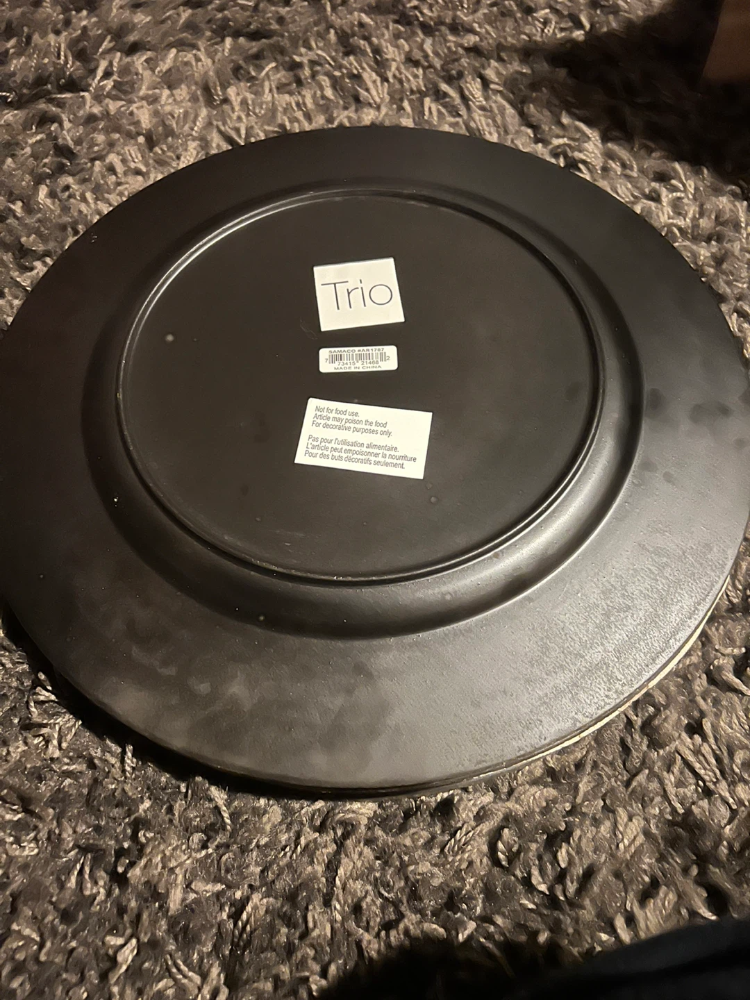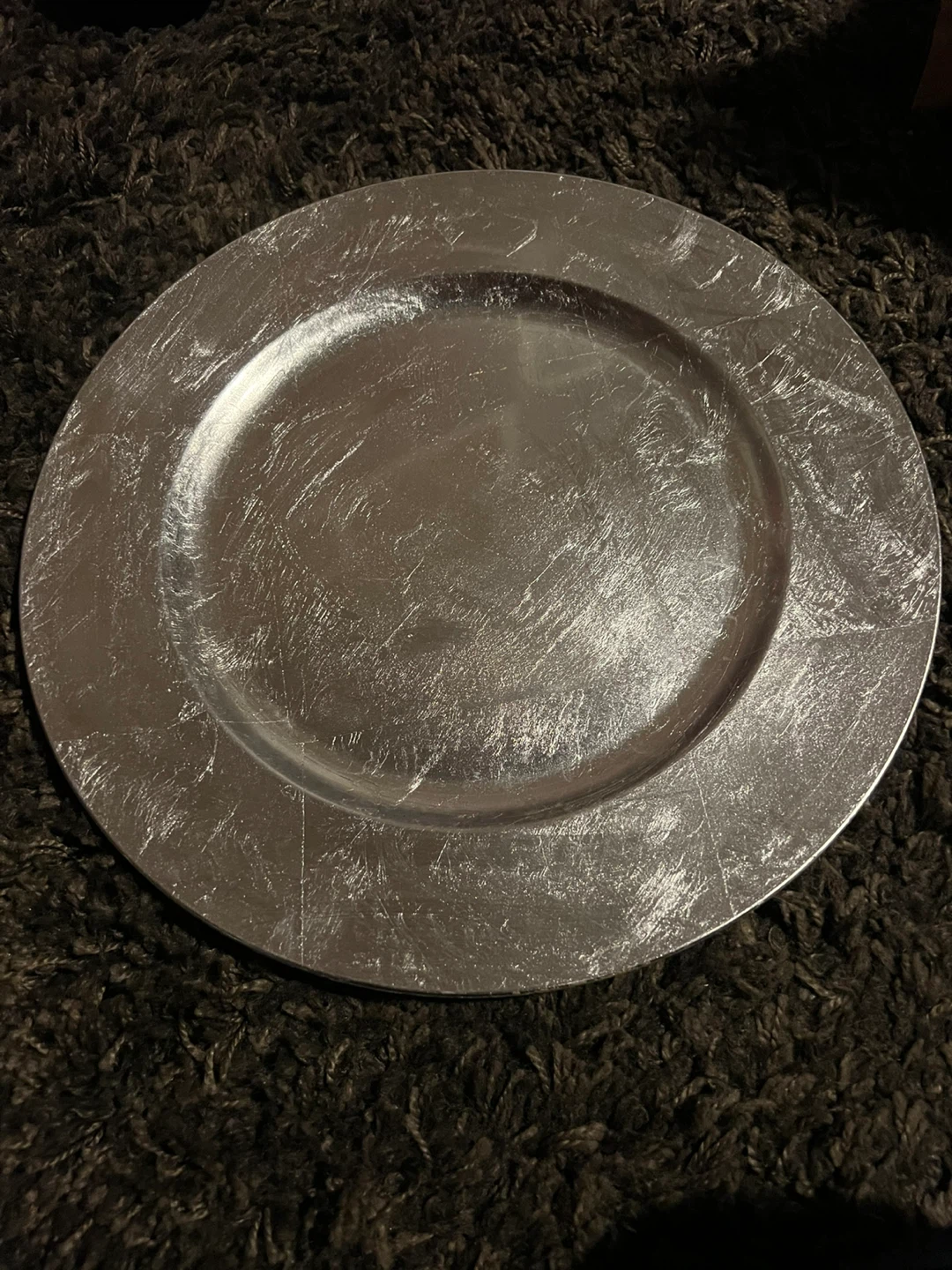 decorative charger plates. One red with a cracked glass effect, and one silver with a distressed metallic finish.intended for decoration only. These add a touch of elegance to your table setting!