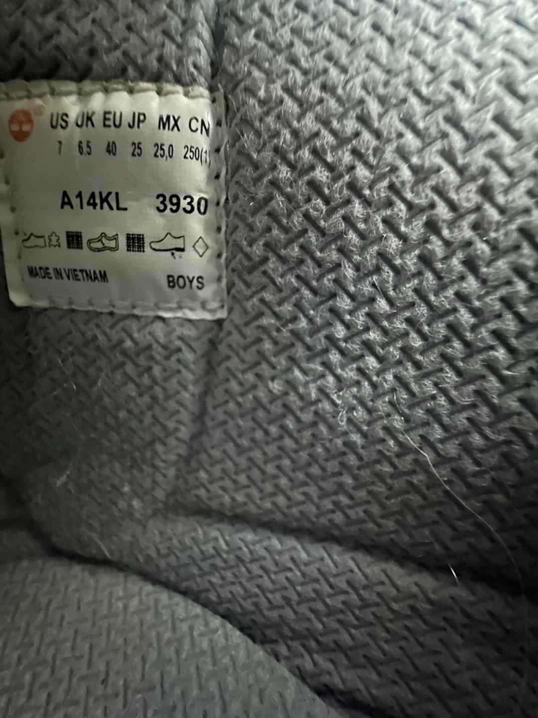 Timberland waterproof boots for boys. Made in Vietnam. These boots are a light blue colour. They feature the classic lug sole for good traction.