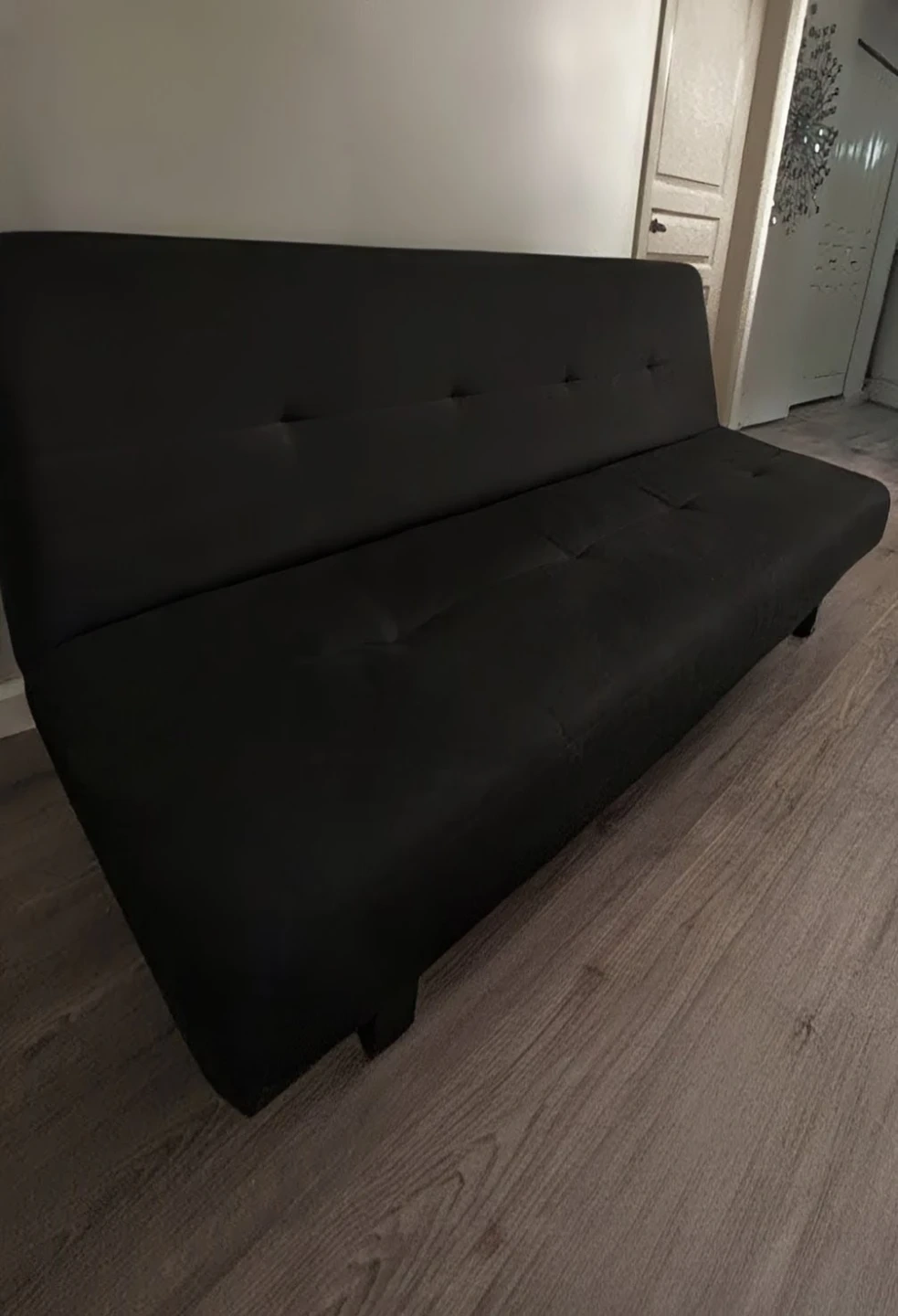 The BALKARP sofa-bed offers around-the-clock comfort. The adjustable back allows you to sit during the day, lean back in the evening and lie down at night. The Knisa black cover fits in just about anywhere.