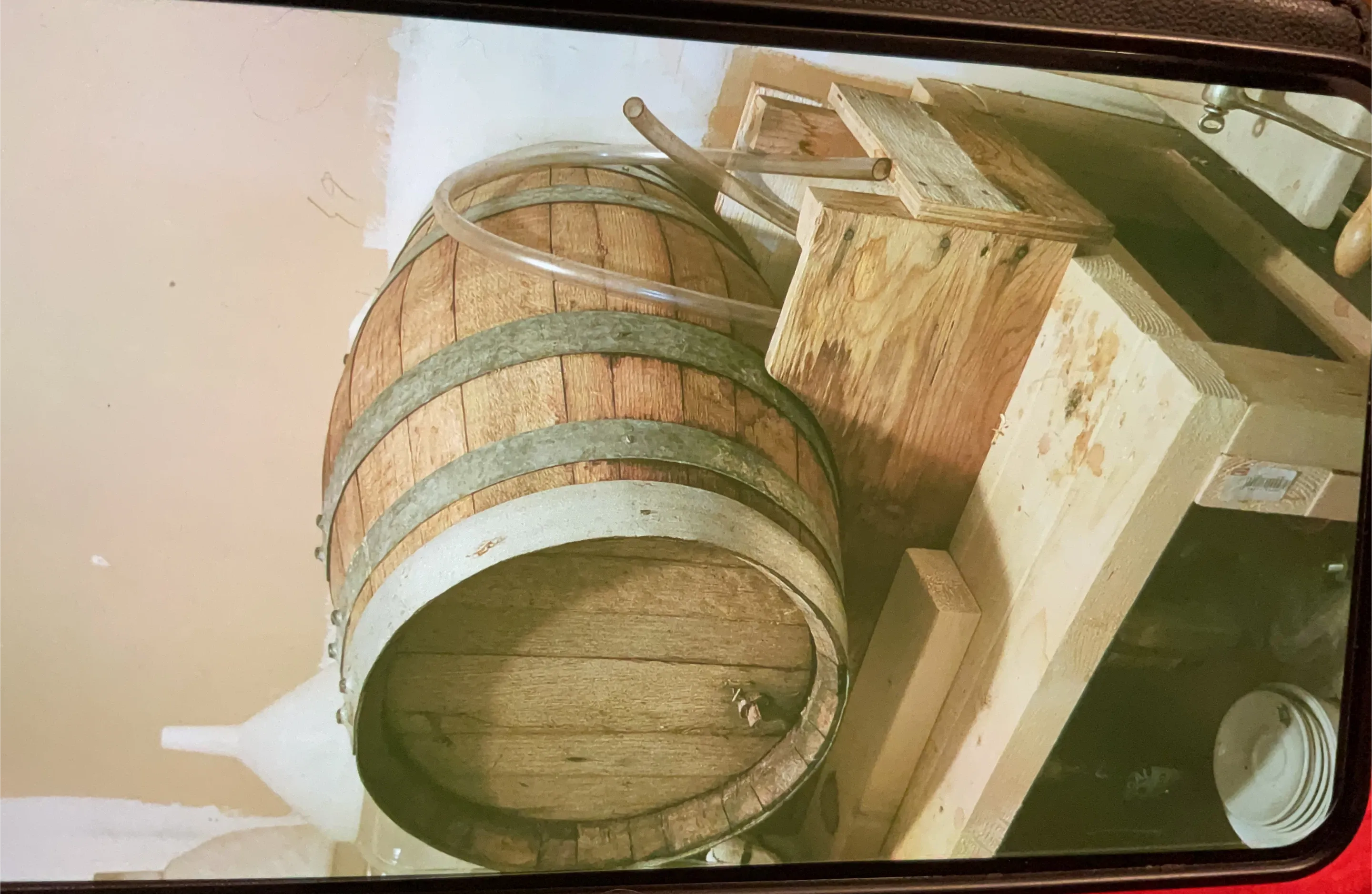 Selling a wooden wine barrel, complete with a custom-built wooden stand. The barrel is in good condition and comes with a clear tube. Perfect for home brewing or as a decorative piece!