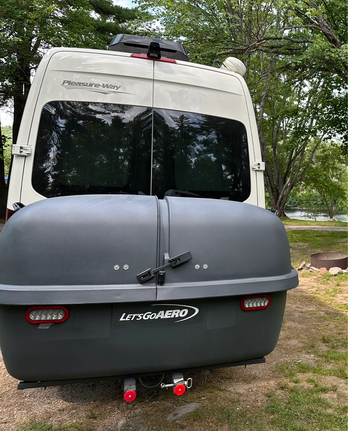 It's built on a Mercedes-Benz Sprinter chassis and includes a rear storage cargo carrier.
