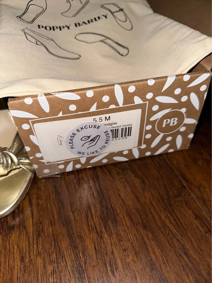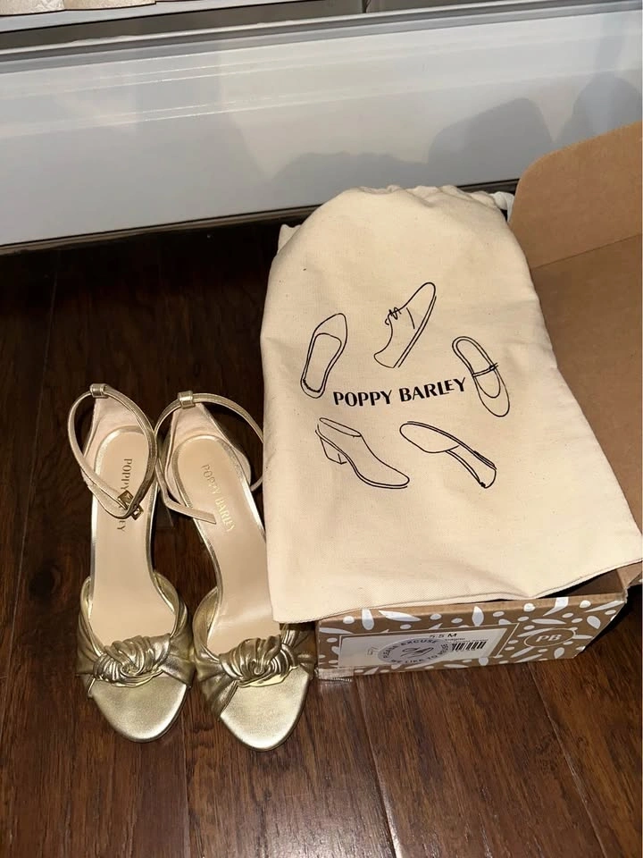 Brand new Poppy Barley Esther Heeled Sandals, size 5.5. I bought these from an online warehouse sale but they are unfortunately too small. I'm selling them for what I paid. They've only been tried on at home. Includes the original box and dust bag.