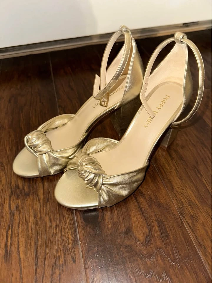 Brand new Poppy Barley Esther Heeled Sandals, size 5.5. I bought these from an online warehouse sale but they are unfortunately too small. I'm selling them for what I paid. They've only been tried on at home. Includes the original box and dust bag.