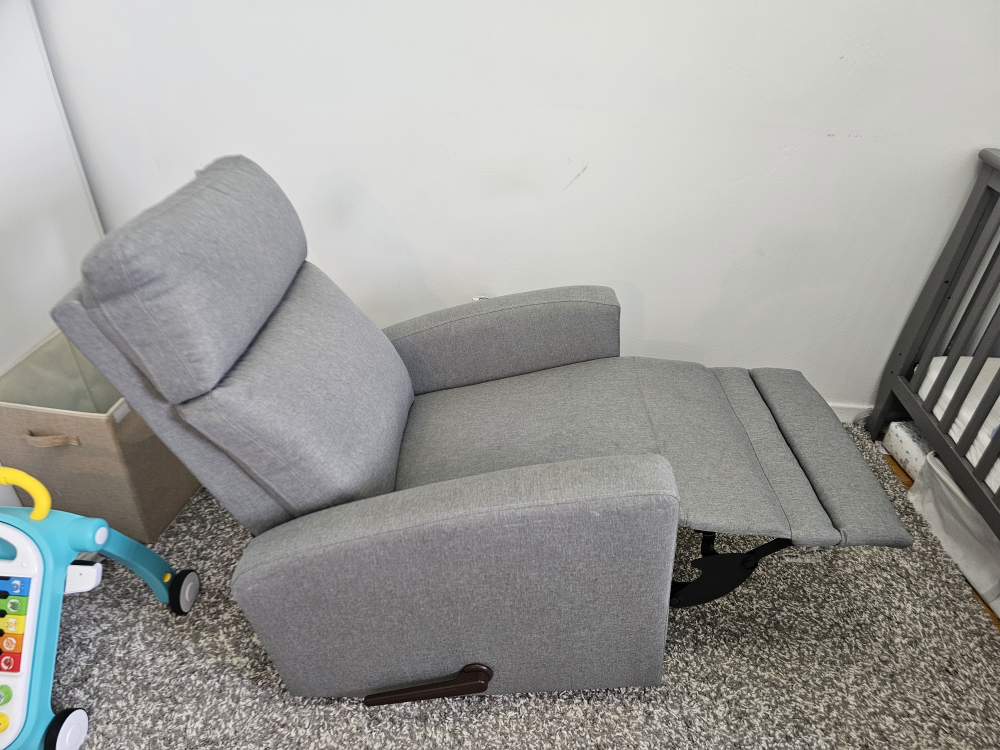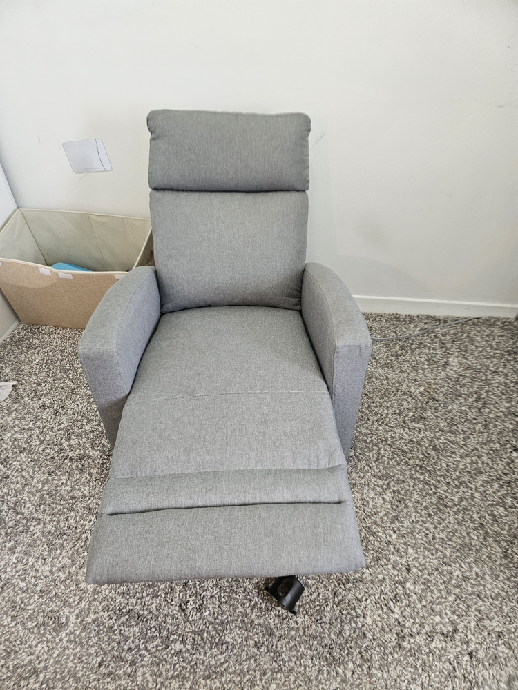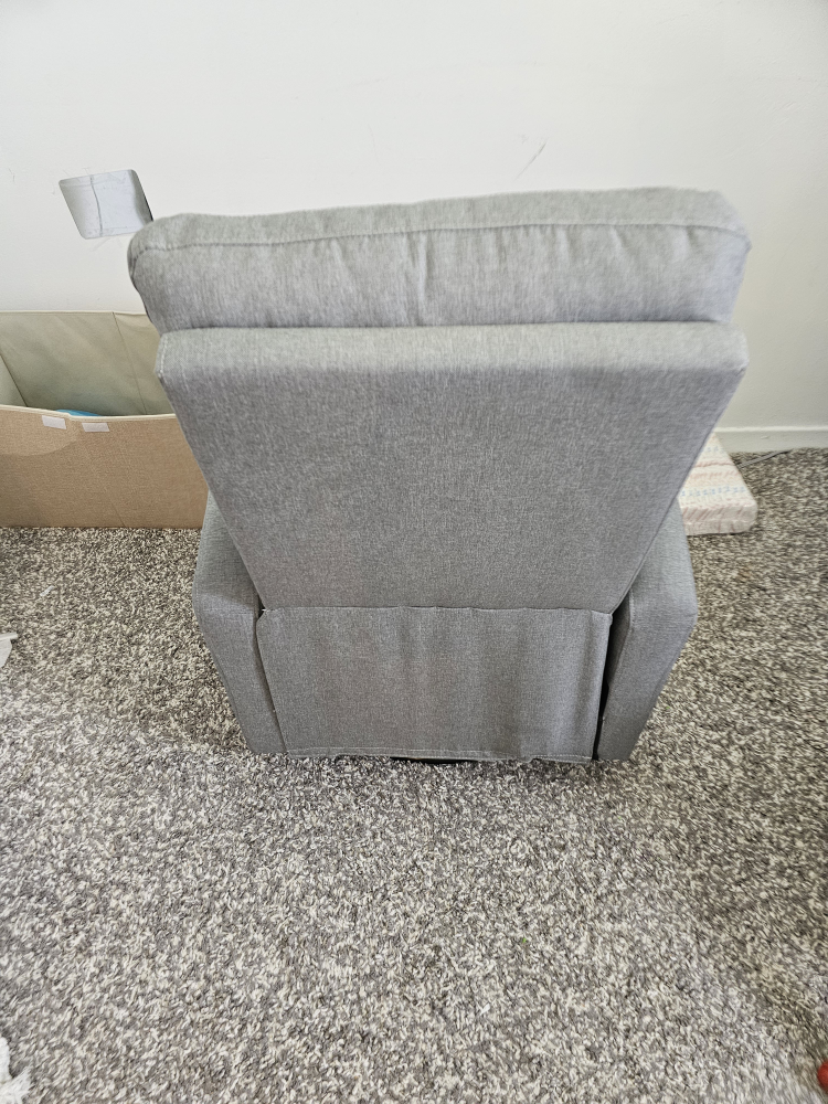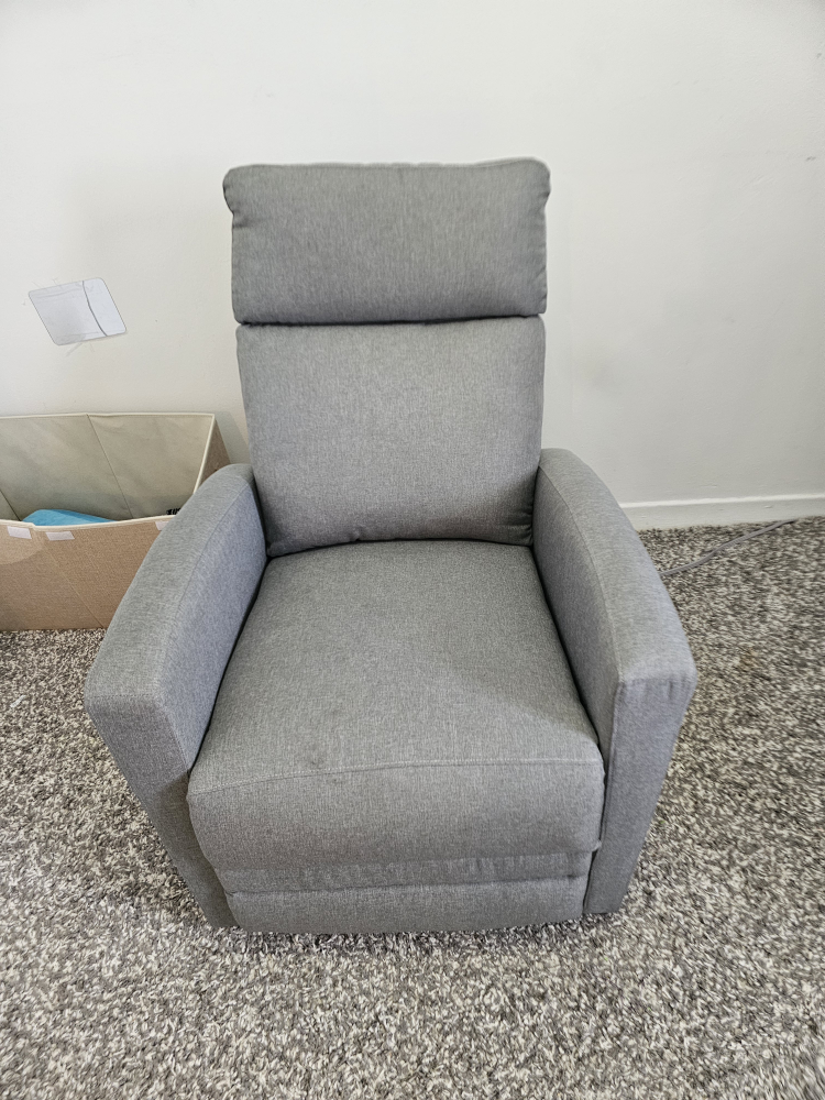 1 / 81 / 8Buy & SellGrey Reclining Swivel Glider ChairGrey Reclining Swivel Glider Chair$162Comfortable grey fabric recliner. Swivel base. Good condition. Perfect for relaxing or nursing.ConditionLike newWHERE TO MEETCheck LocationView MapSELLERSarahLeaside302 reviews4 chats·3 favorites·83 viewsSEND CHAT TO SELLERHi Sarah! I’m interested in your listing.Hi Sarah! I’m interested in your listing.Get the Karrot app to chatSign In to chat