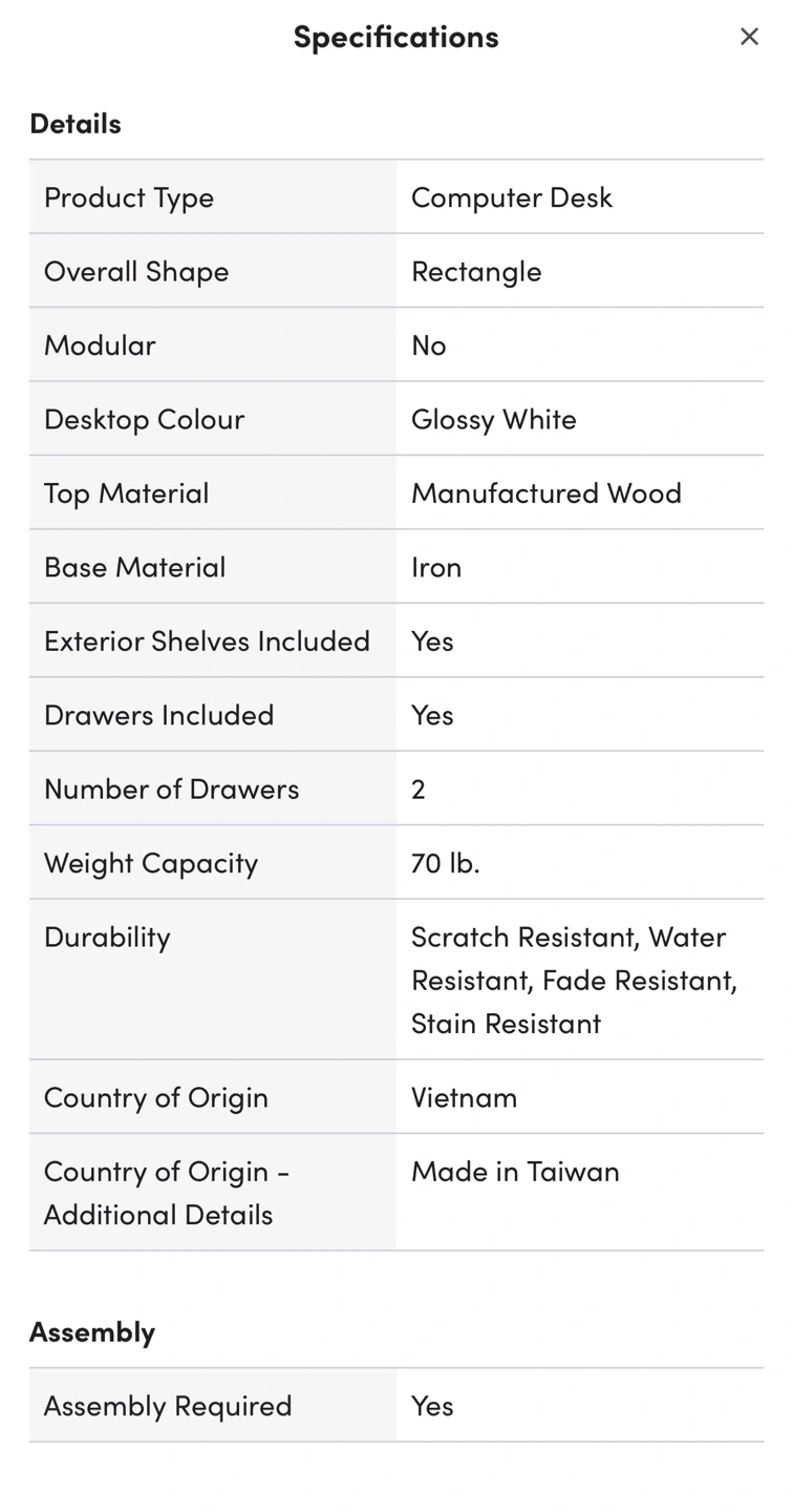 It has 2 drawers and a middle shelf for storage — perfect for working from home or studying.