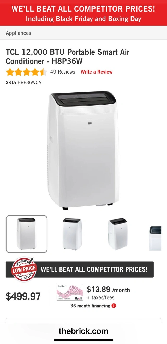 Stay cool the smart way with the powerful cooling capacity of the TCL 12,000 BTU ASHRAE Smart Portable Air Conditioner featuring a fan and dehumidifier mode. The fan circulates air while the AC helps you easily adjust and manage temperatures in rooms up to 325 sq. ft. Additionally, the dehumidifier function helps to reduce moisture in your home. The user-friendly app lets you control your unit from anywhere, change the temperature, set schedules, and more. When paired with Alexa or Google Assistant, you can use simple voice commands to control your portable AC. The washable and reusable filter helps protect the life of your portable AC while also reducing large airborne particles like dust and pet hair. Setup is made easy with the included installation kit and guided in-app instructions that will have your unit up and running in minutes. The two handles and four wheels make this portable air conditioner easy to glide from room to room, keeping you cool wherever you go. Fan, dehumidifier and air conditioner all in one Cools up to 325 sq. ft Pairs with TCL app, Alexa & Google Assistant Washable and reusable filter
