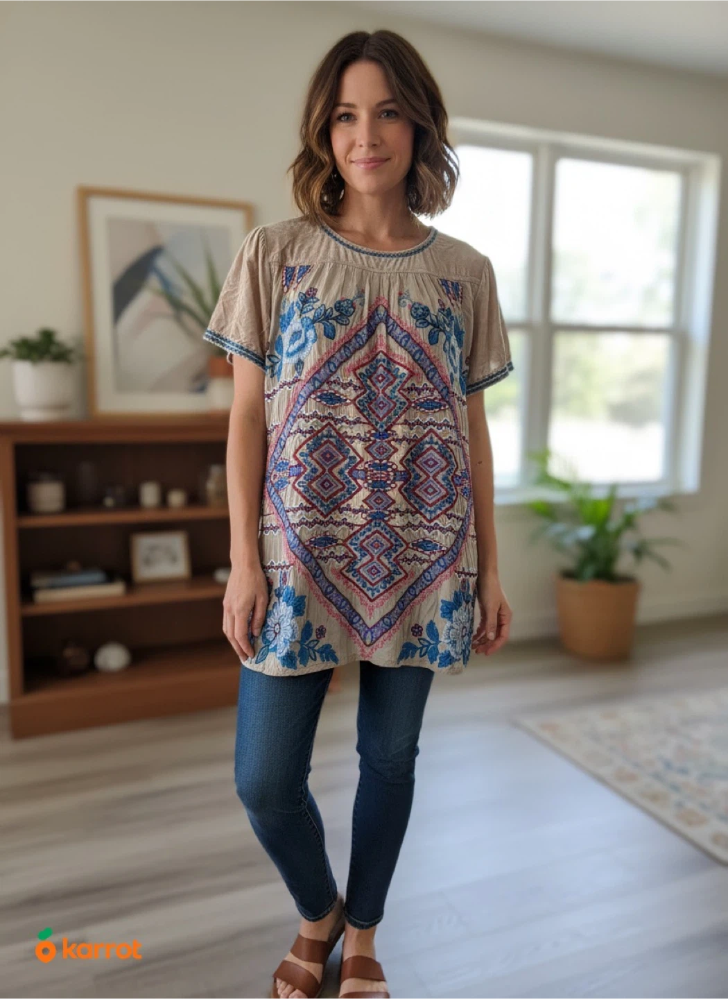 Johnny Was Embroidered Tunic Top