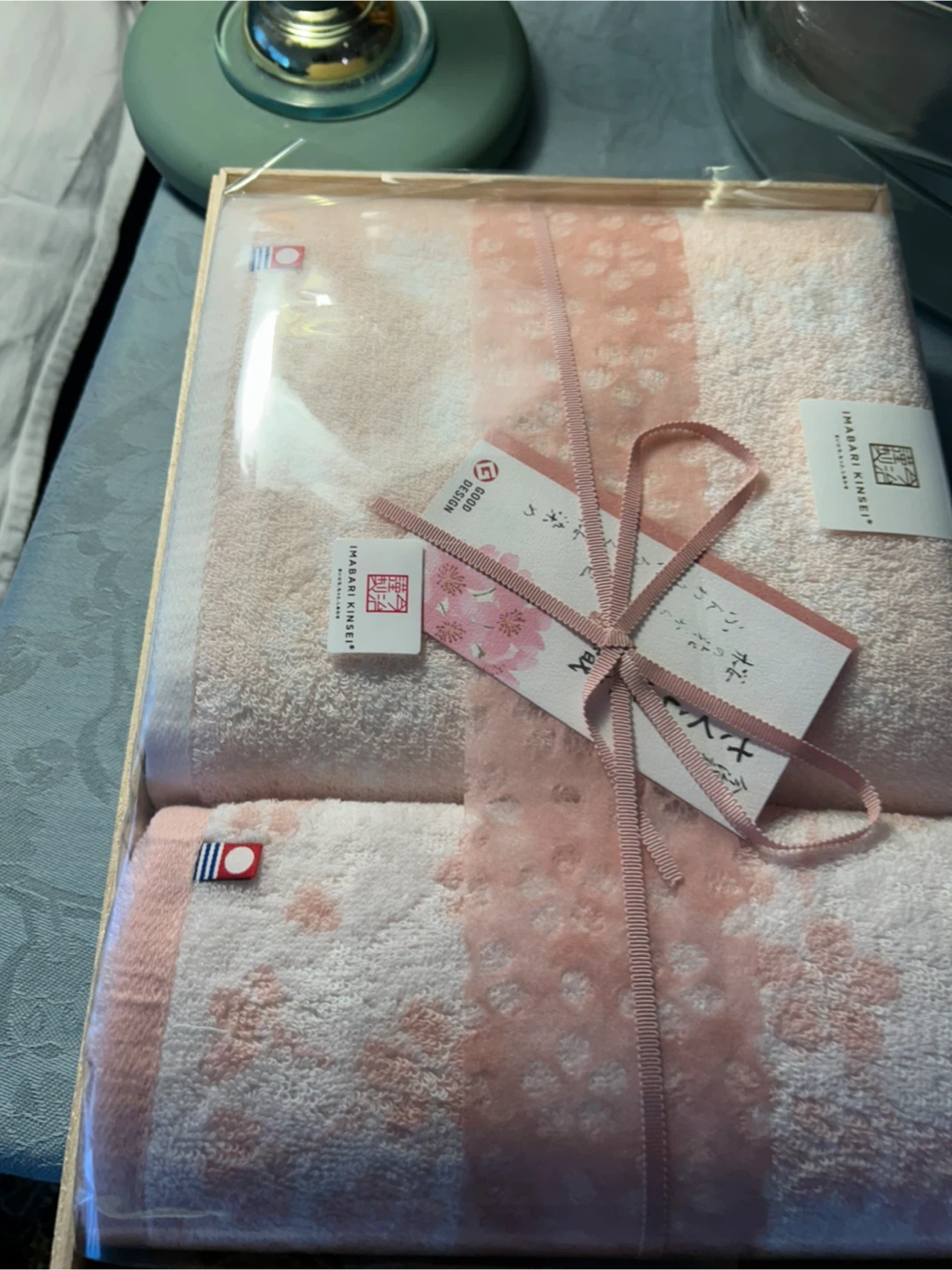 I'm selling a brand new Imabari Kinsei towel set. It's a beautiful pink colour and still in its original packaging! These towels are super soft and absorbent, perfect for adding a touch of luxury to your bathroom. The box is included, so it's also great for gifting