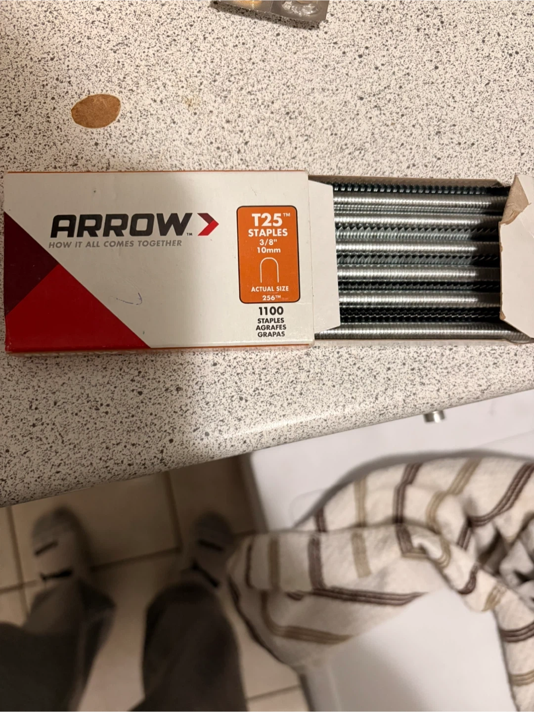 Arrow T25 staples are for use in staplers. They're 3/8" (10mm) long and there are 1100 in this box. These staples are great for fastening materials together securely.