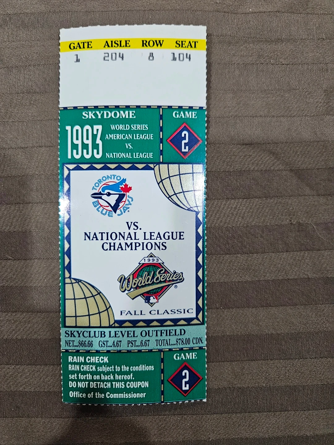 Authentic ticket stub from the 1993 World Series featuring the Toronto Blue Jays! These are from Game 2 at the Skydome. A piece of baseball history!