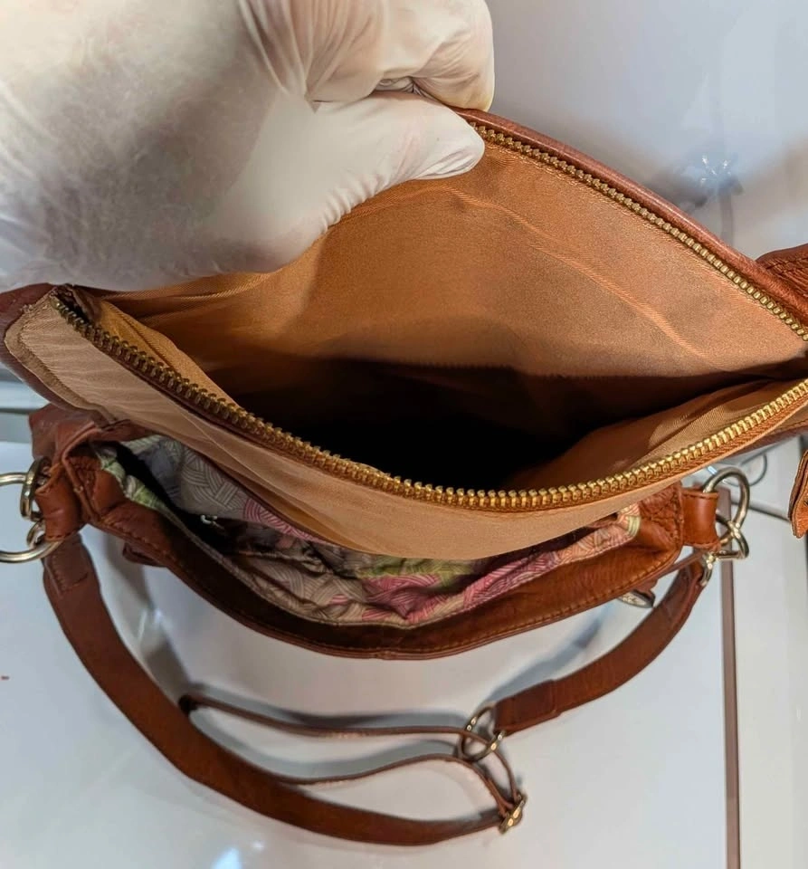 Boho-Chic Interior: Fully lined with a signature colorful patterned fabric that makes finding your keys or phone a breeze.