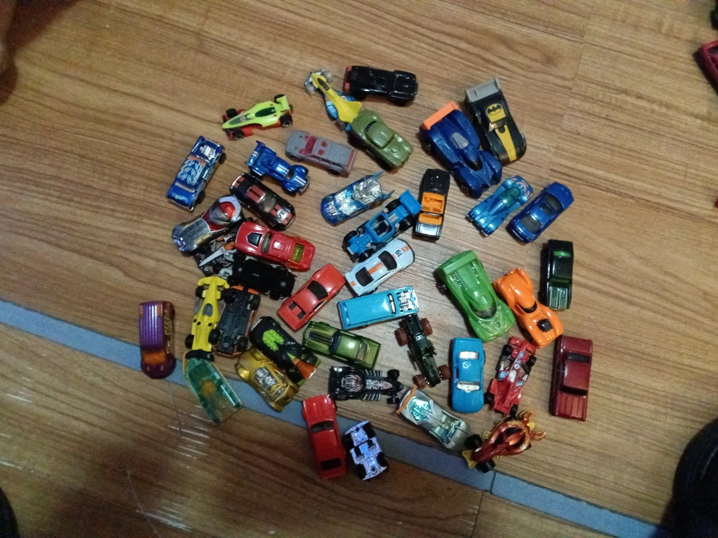 This is a collection of assorted Hot Wheels toy cars. The lot includes a variety of colors and models. They're made of die-cast metal.