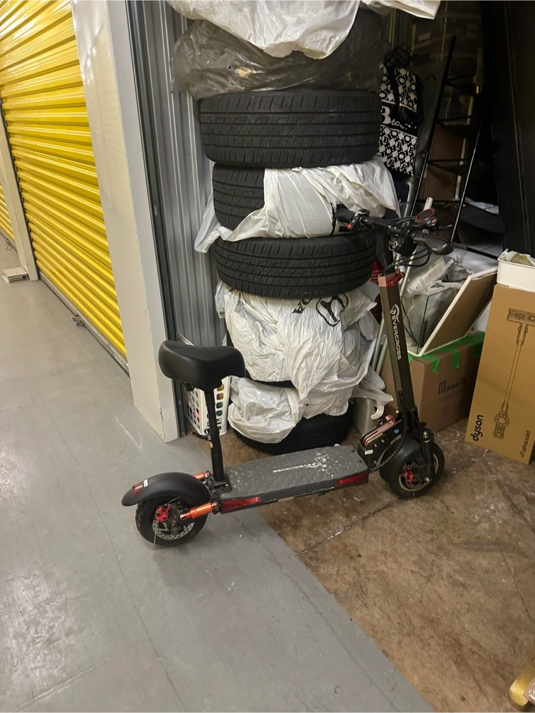 EVERCROSS electric scooter with a comfortable seat. It's a great way to get around town! Features a sturdy build and a removable seat for versatile riding options.