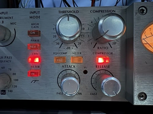 I haven’t used this mic preamp in a while, so I tested it today with a quick voice recording. The mic sounds clear, and both the EQ and compressor are working well. The meter isn’t moving. This unit is not in 100% perfect condition. It’s best suited for someone who doesn’t mind minor issues or knows how to get parts and repair. There are minor scratches and some dust; I found no big dents. I kept this in a smoke-free studio. I will include 4 bulb replacements for the meter and the power cable. Here’s a short audio clip I recorded today so you can hear exactly how it sounds.