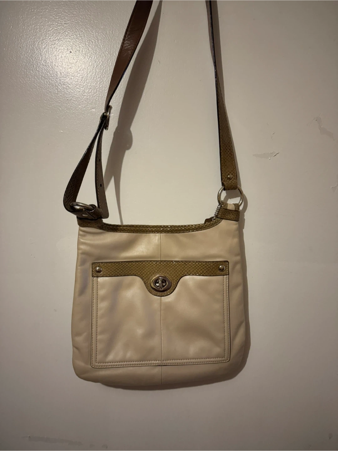 Selling a lovely Coach crossbody bag! It's in great condition and perfect for everyday use. The bag features a stylish design with leather and unique detailing. The model number is B1271-F18533. It's a great size for carrying your essentials