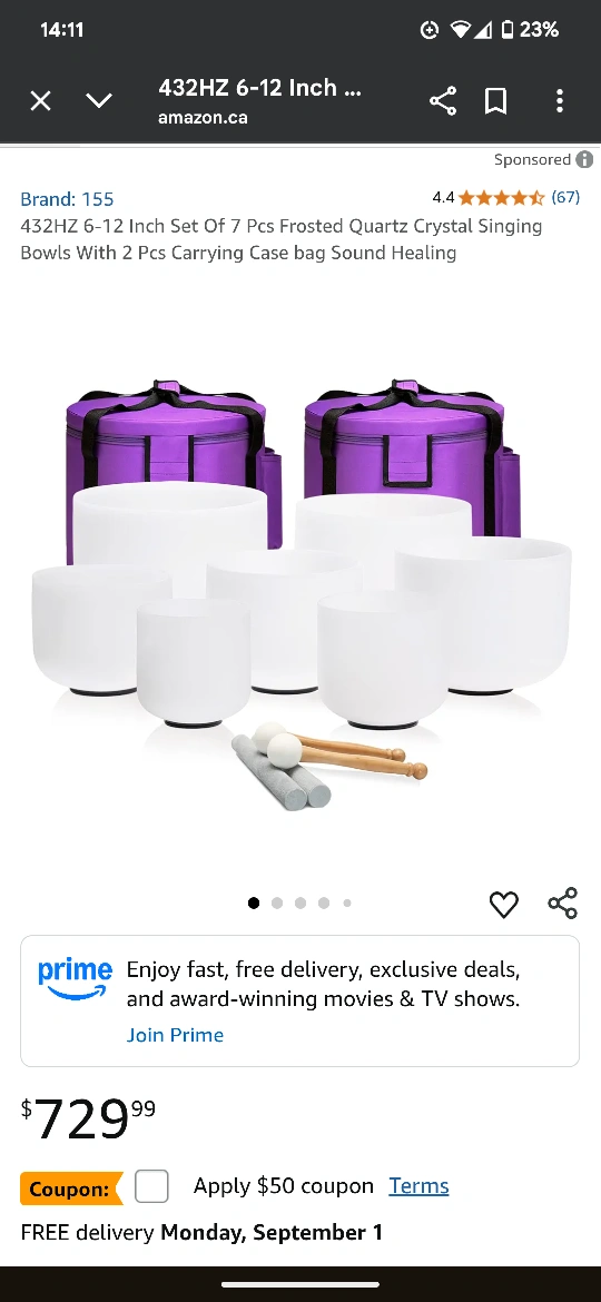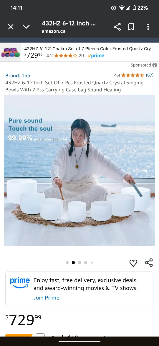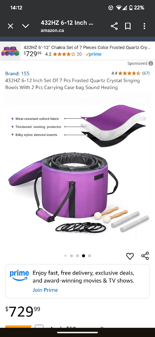 Selling a 432HZ 6-12 Inch Set of 7 Pcs Frosted Quartz Crystal Singing Bowls With 2 Pcs Carrying Case bag Sound Healing.