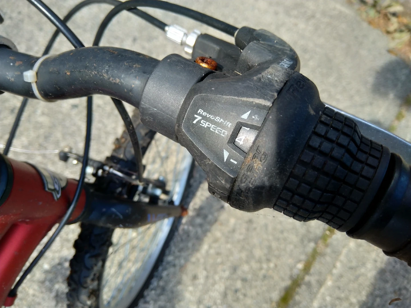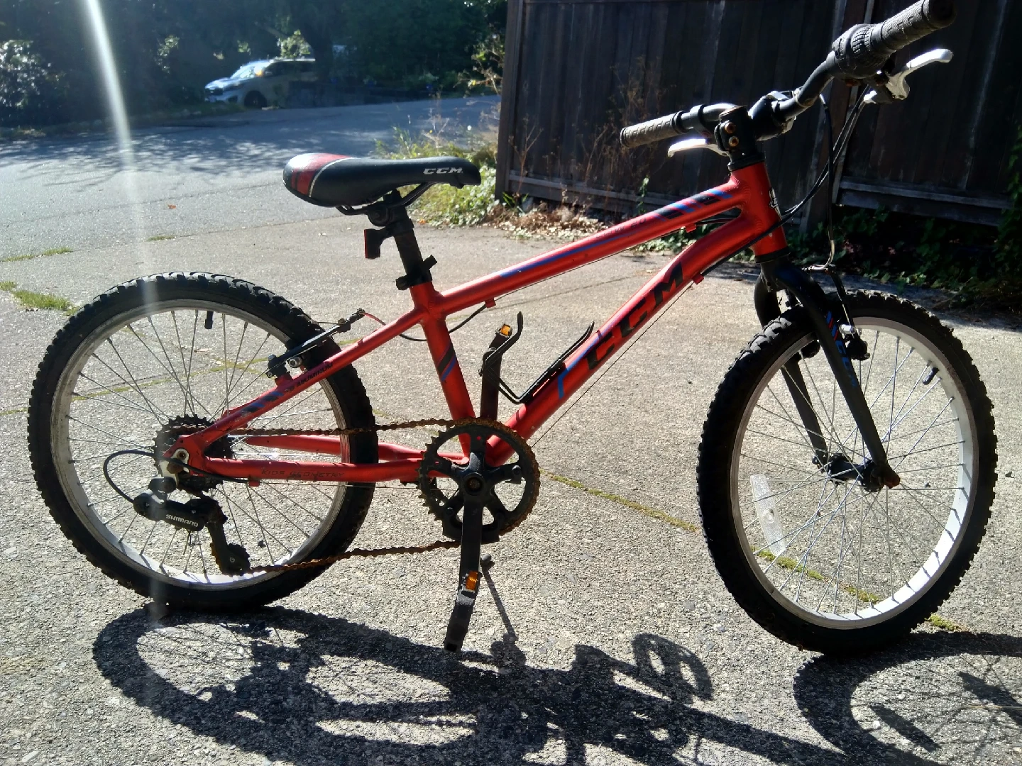 Front and rear breaks, 7 speed Shimano grip shift, quick adjust seat, kickstand and with a water bottle holder.