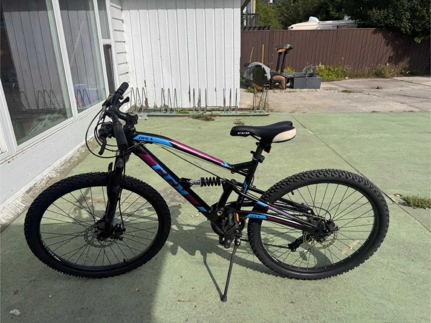 Selling a CCM Apex dual suspension mountain bike! It's in good condition and ready for some trails or just cruising around the neighbourhood. The bike features a comfortable CCM seat and a sturdy frame. Perfect for anyone looking for a reliable and fun ride! Disc Brake - Front and Rear Bike speed - 24 Frame size - 6.7 in Bicycle wheel size - 26”
