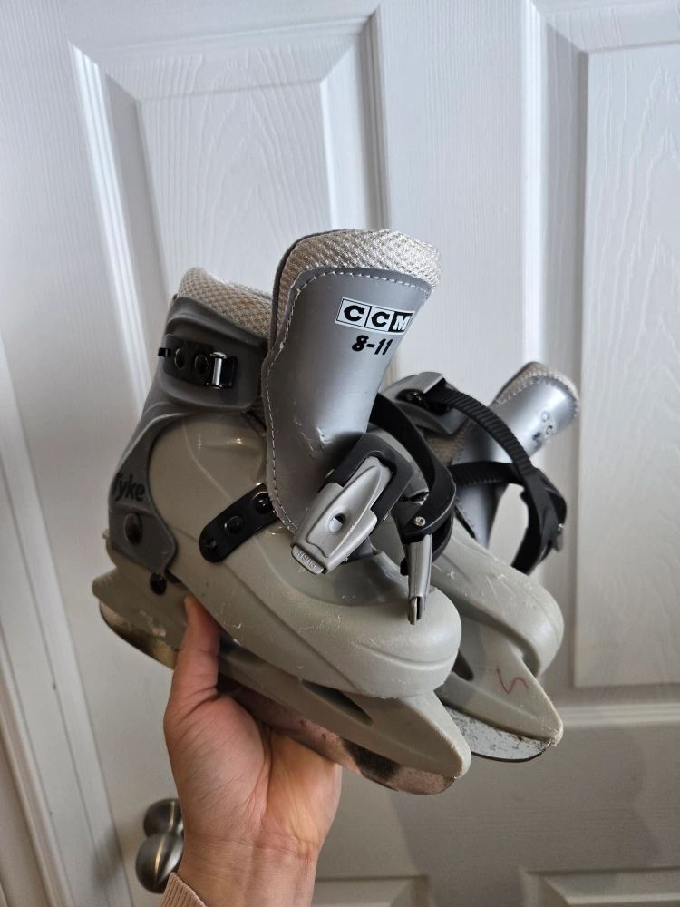 76Used CCM ice skates. Size 8-11. Grey colour. Good for recreational use. Minor wear.