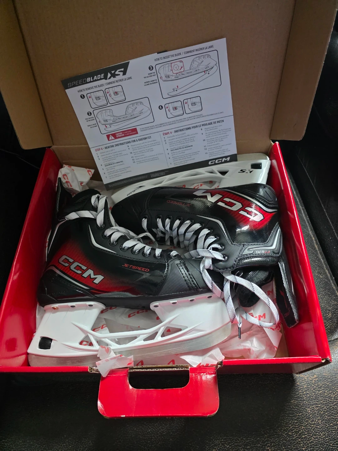 10Selling a pair of CCM JetSpeed FT870 senior hockey skates. They come in the original box and include instructions for a custom fit. These skates are a regular fit.