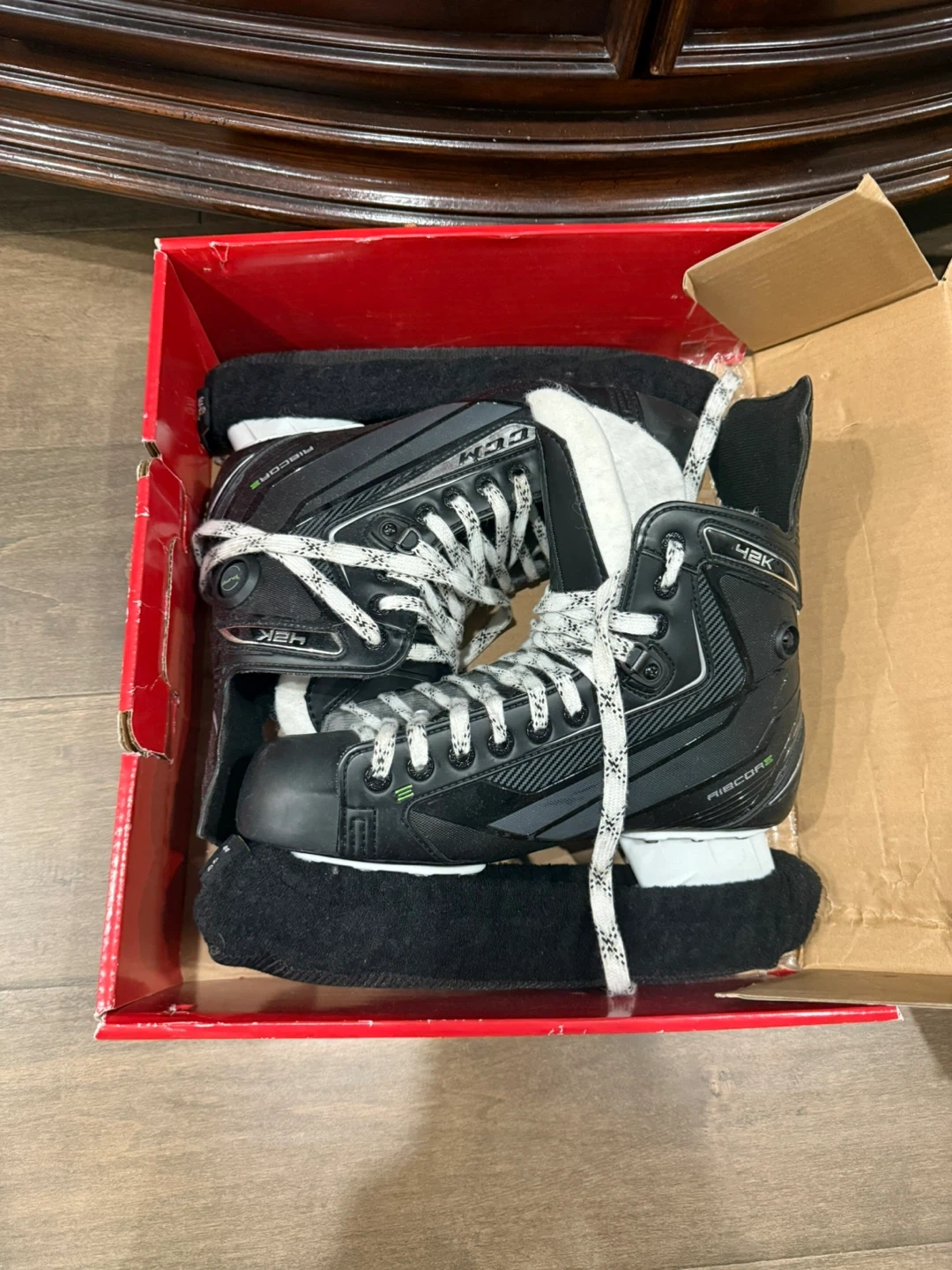 75Selling a pair of CCM Ribcor 42K ice skates in size 8 They are in great condition and come with the original box. These skates are perfect for someone looking for a reliable and comfortable pair for the rink!