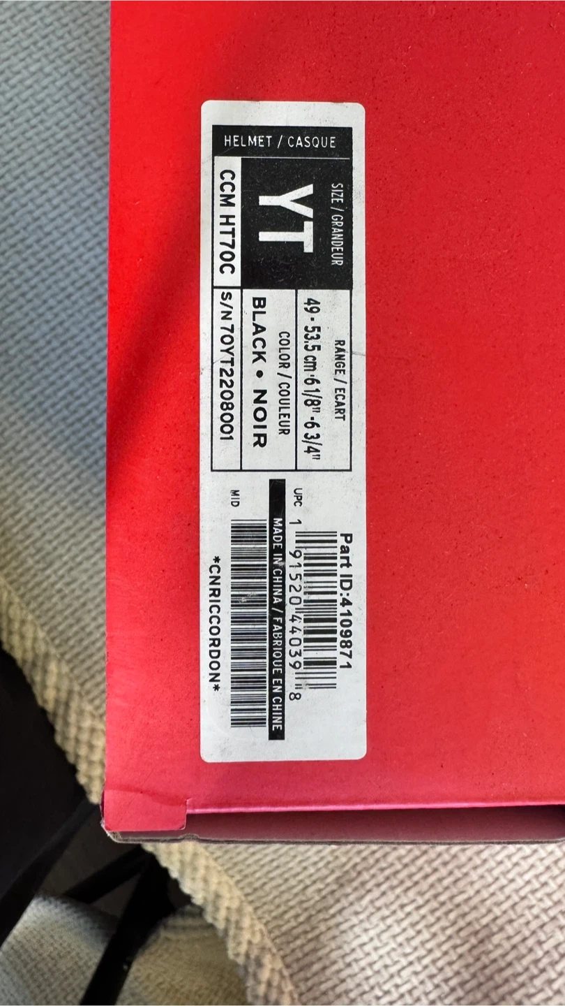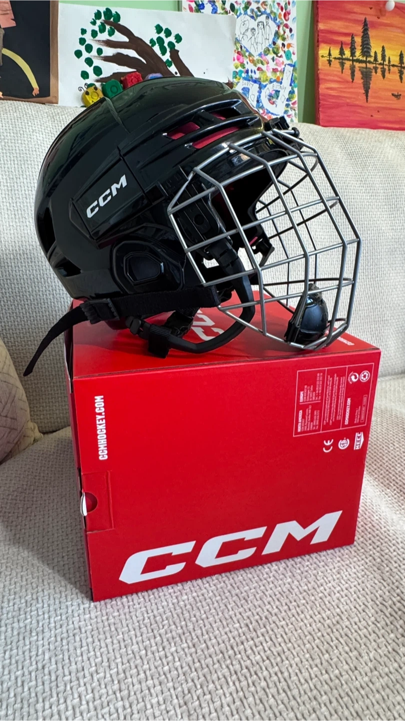 Selling a CCM Tacks 70 hockey helmet in youth size. It comes with the original box. The helmet is black and in great condition! 3-7 yrs old and 49-53.5 cm.