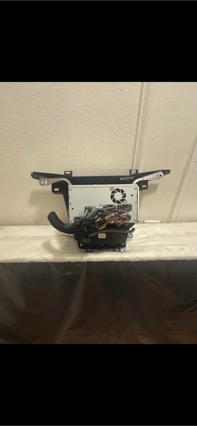 This is a car infotainment system display unit with a screen and control knob. It has multiple buttons for various functions. Wires are connected to the back for operation. This unit is black and designed for a vehicle's dashboard. ps if y’all give me dumb remarks and dumb answers, I’m not gonna answer y’all don’t waste my time