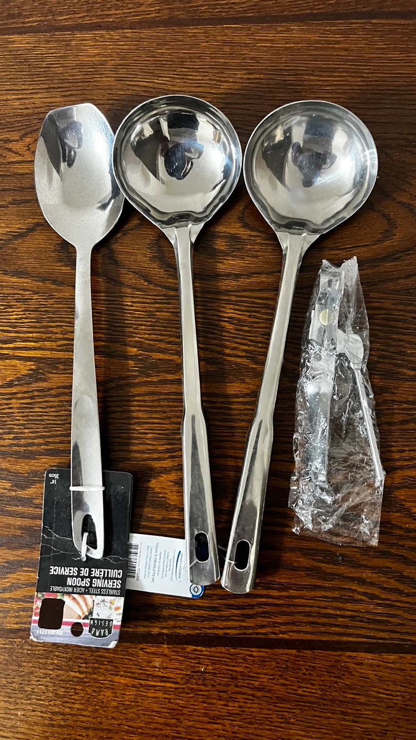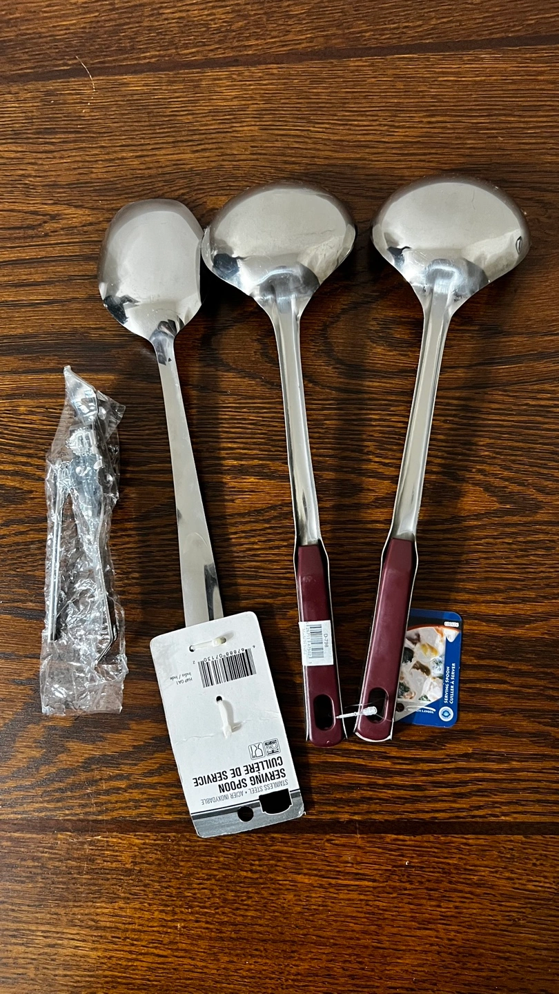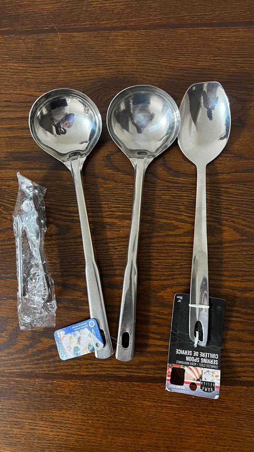 There are two ladles ; 1 can opener and one serving spoon. They are all stainless steel and ready for a new home