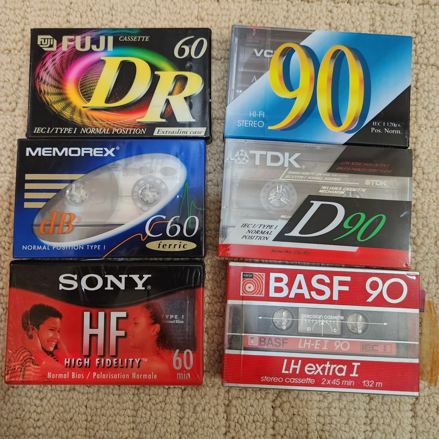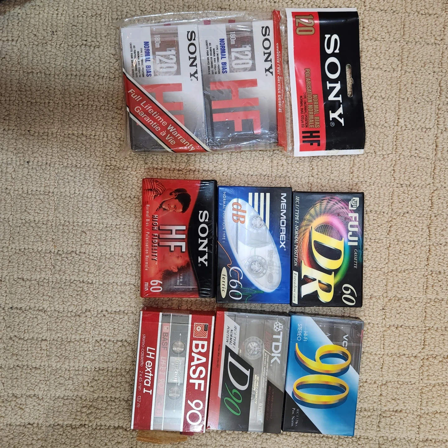 Selling a collection of new audio cassette tapes. Includes brands like Memorex, Fuji, Sony, and BASF. Various lengths and types for your listening pleasure! 3-60 mins 2-90 mins 2-120 mins 1 price for the lot