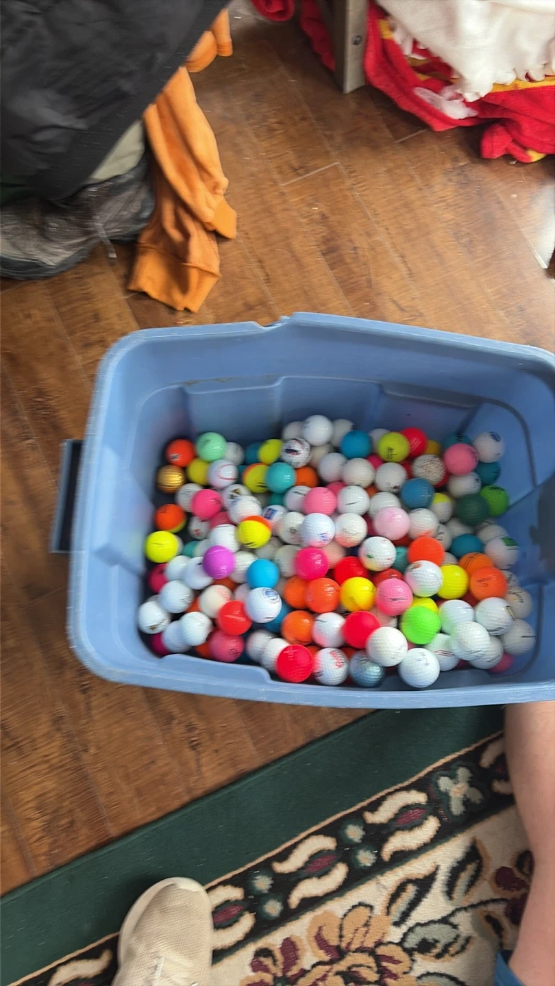 Bulk lot of assorted colour golf balls. Includes white, pink, yellow, orange, green, and blue. Great for practice or casual play! Contact me 6478283384 cash only