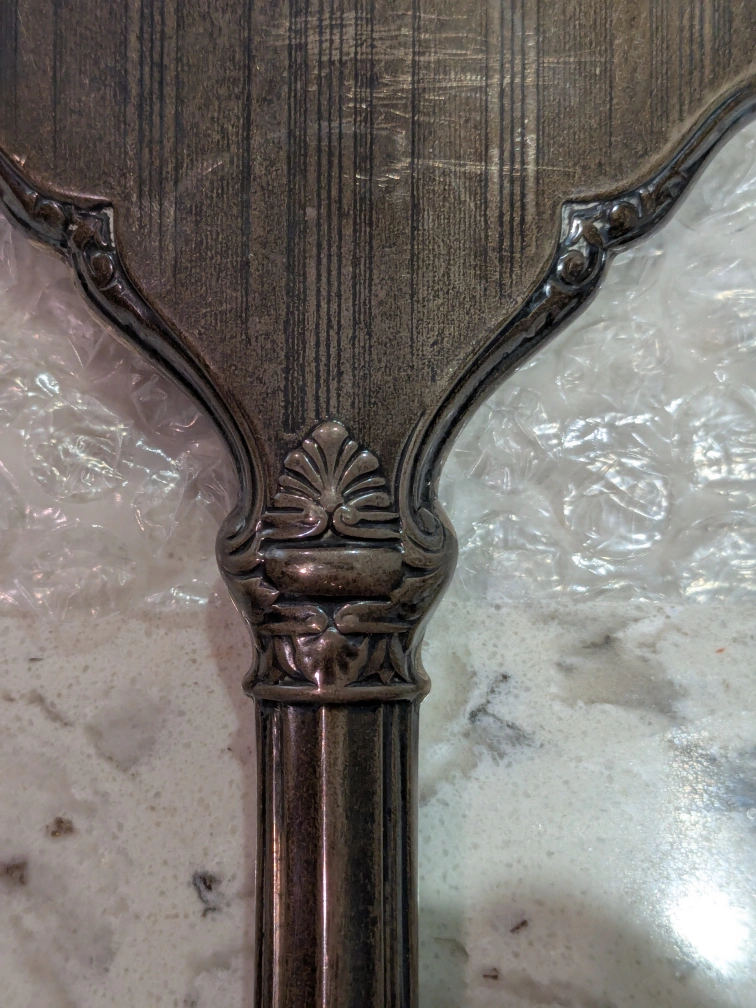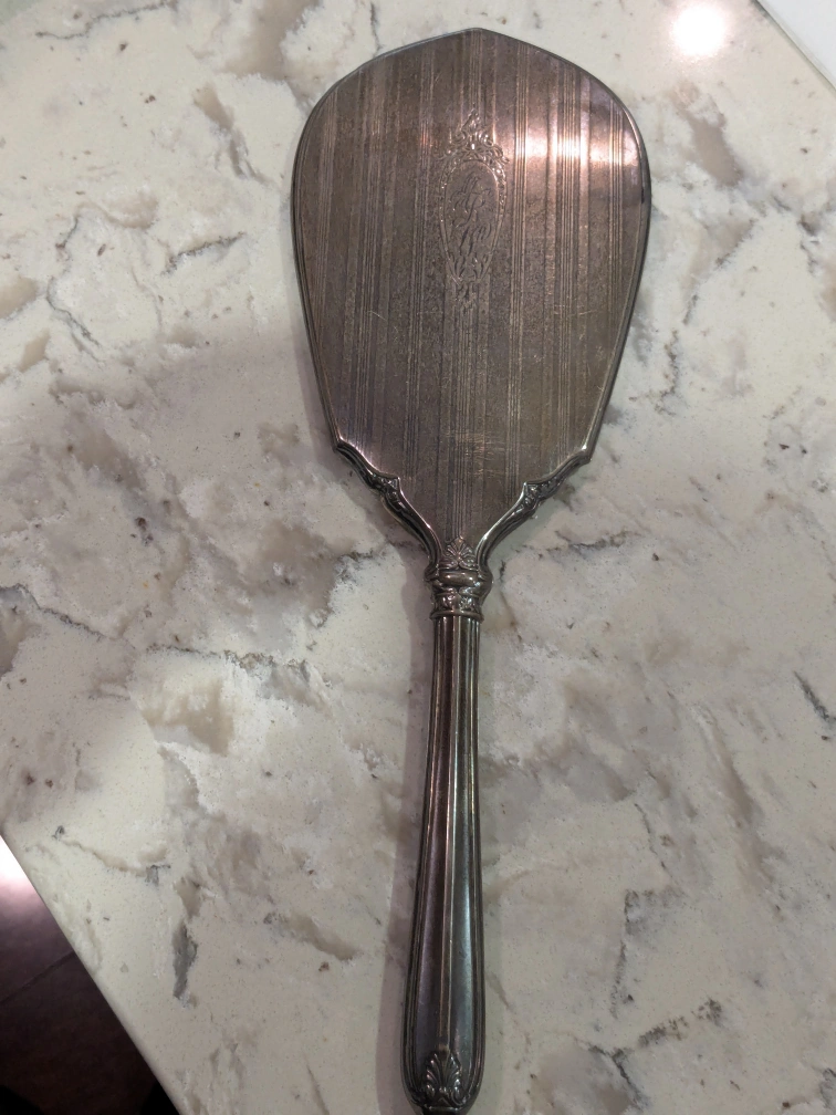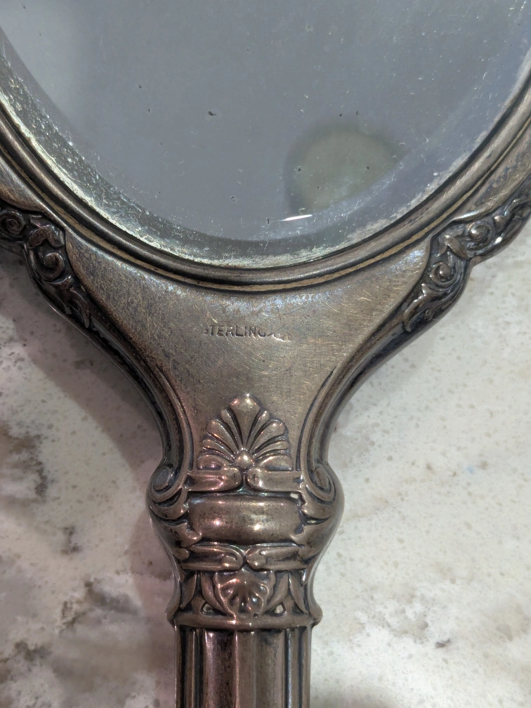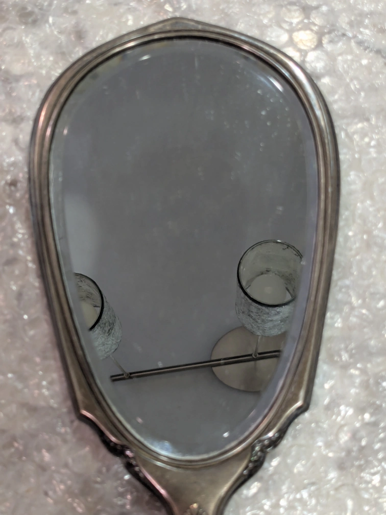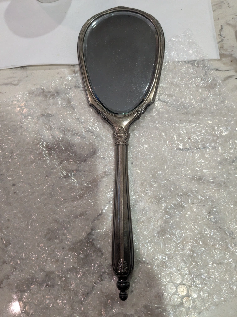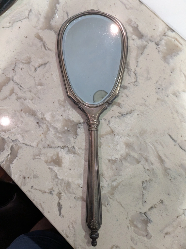 Vintage 19 century Victorian sterling silver hand mirror, Halmarked sterling, measuring 14"long weight 0.13lbs or 370 grams. Has monogram on the back all solid in excellent condition.
