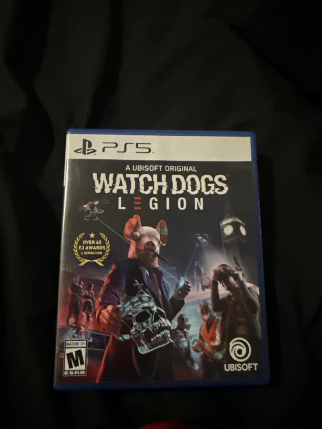 This is the Watch Dogs: Legion video game for PlayStation 5. It's a Ubisoft Original title. The game is rated M for Mature 17+.
