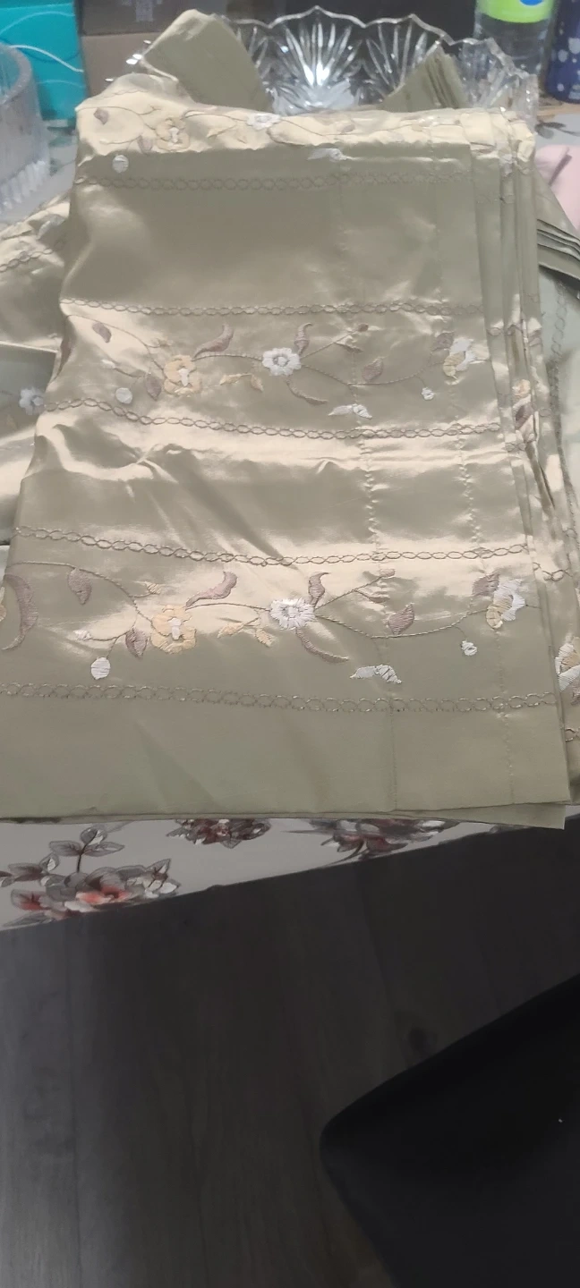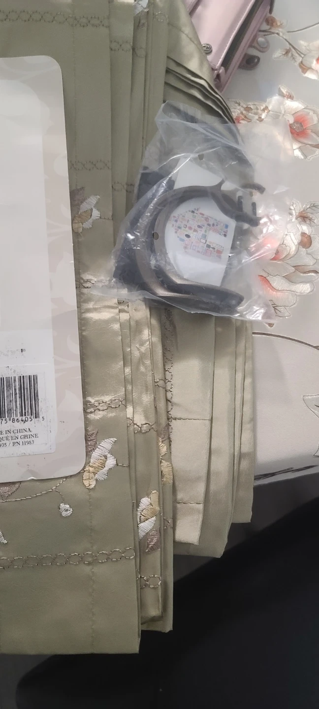 These ATI Home Fashions curtains are in the London Green colour. They are made from 100% polyester fabric and each panel measures 140 cm by 213 cm. They come with curtain rod hooks.