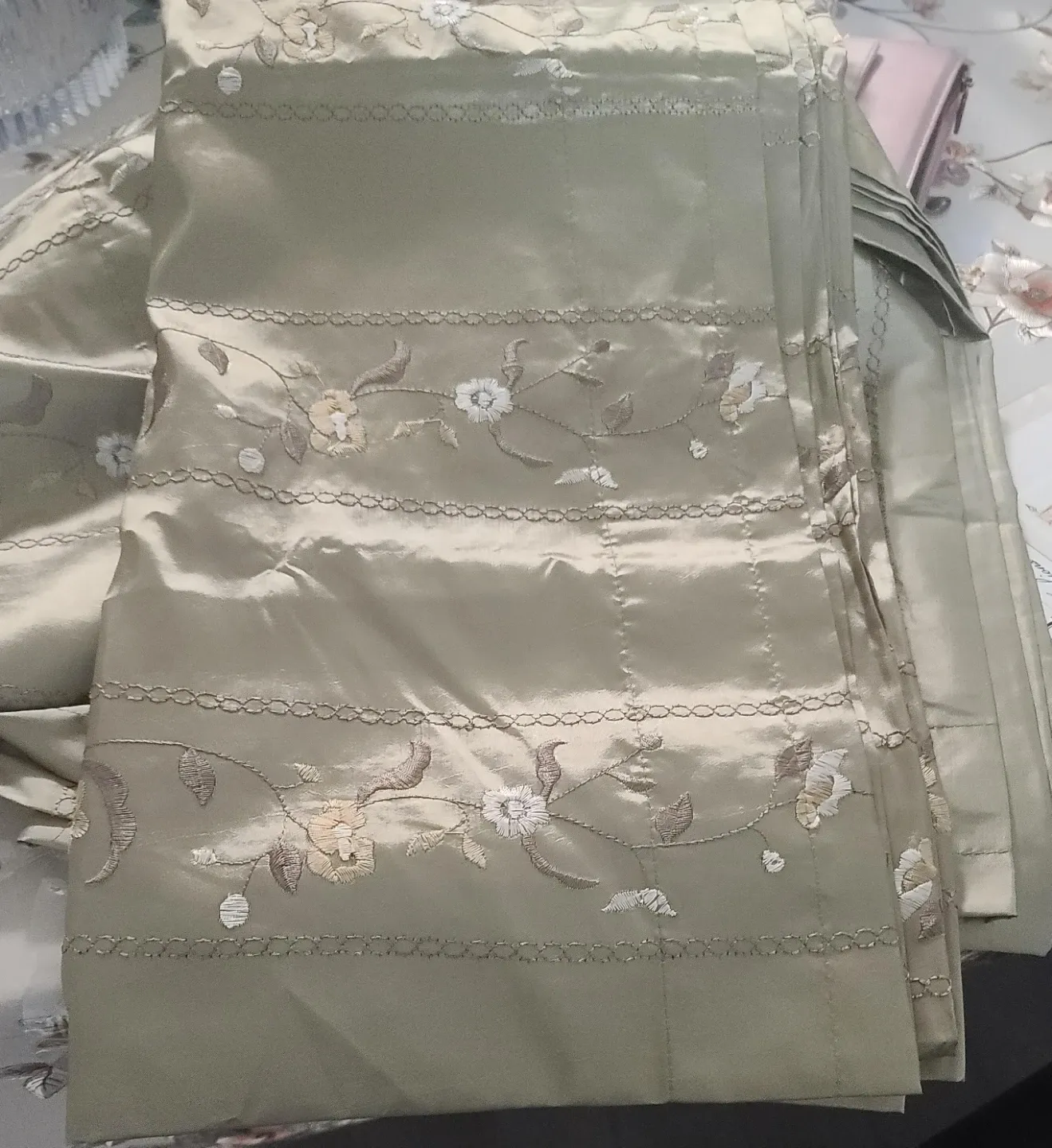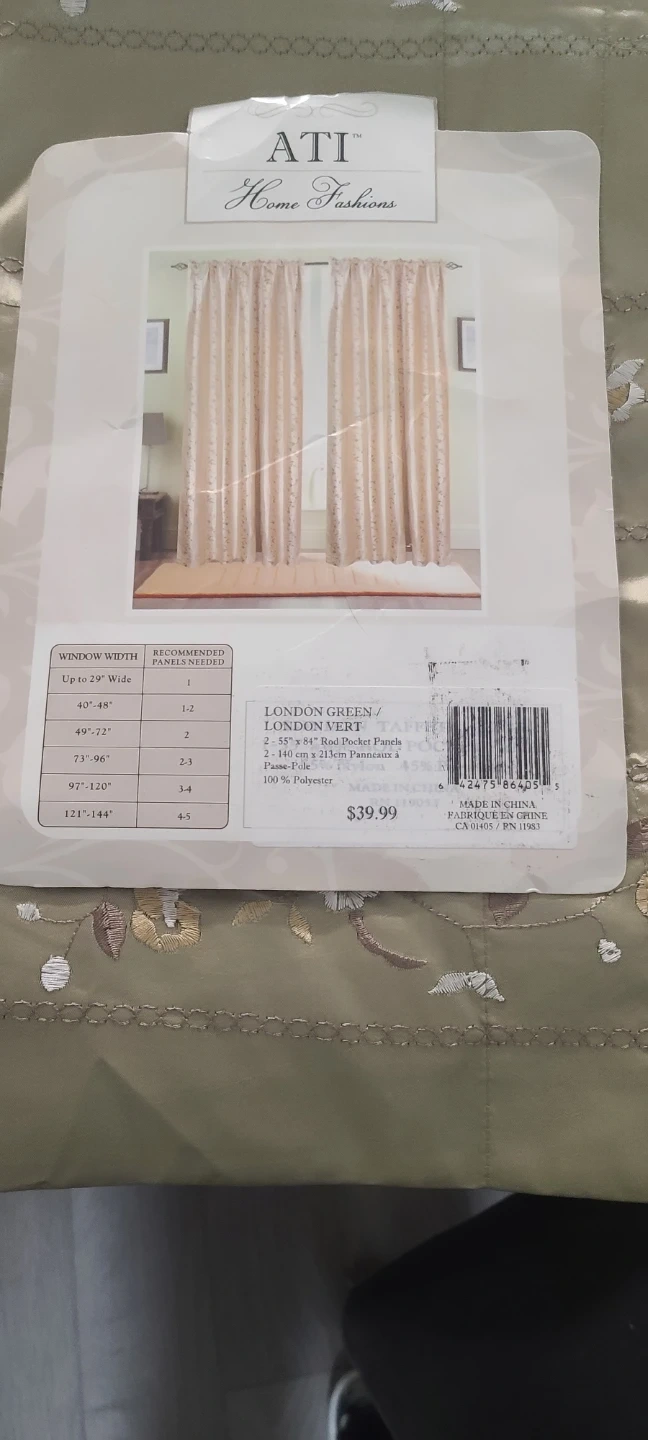 These ATI Home Fashions curtains are in the London Green colour. They are made from 100% polyester fabric and each panel measures 140 cm by 213 cm. They come with curtain rod hooks.