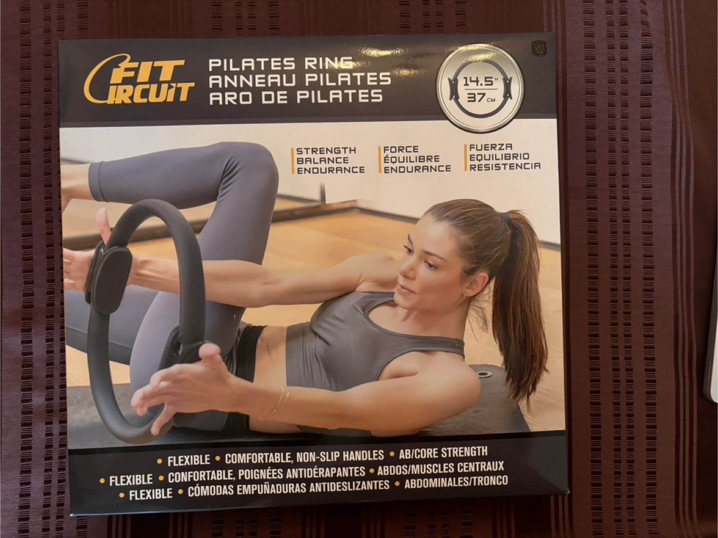 This Fit Circuit Pilates ring is designed for adding resistance to your workout. It's flexible, comfortable, and features non-slip handles. The ring can be used to target muscles between the thighs, knees, and ankles.