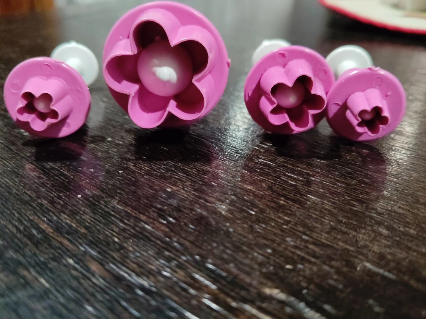 I'm selling a set of flower fondant cutters! These are perfect for decorating cakes and other desserts. They come in a set of four different sizes, so you can create a variety of flower shapes. They're in great condition and ready for a new baker!