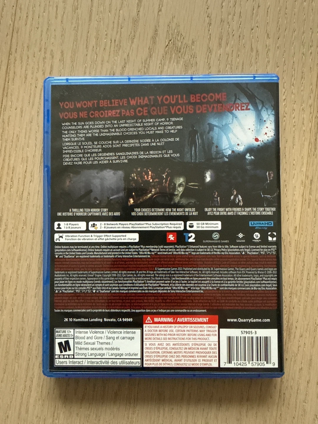 This is The Quarry video game for PlayStation 5. It's a thrilling teen horror story where your choices determine how the night unfolds. Enjoy the fright with friends and shape the story together!
