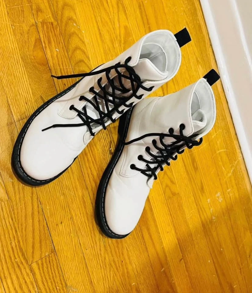 Buy & SellWhite Fall Boots with Black Laces - Size 9White Fall Boots with Black Laces - Size 9$15Stylish white combat boots with black laces and chunky black soles. Super clean and ready to wear.WHERE TO MEETVictoria Park Avenue & Finch Avenue EastView MapSELLERverifiedShadiyaPleasant View762 reviews0 chats·0 favorites·10 viewsSEND CHAT TO SELLERHi Shadiya! I’m interested in your listing.Hi Shadiya! I’m interested in your listing.Get the Karrot app to chatSign In to chat